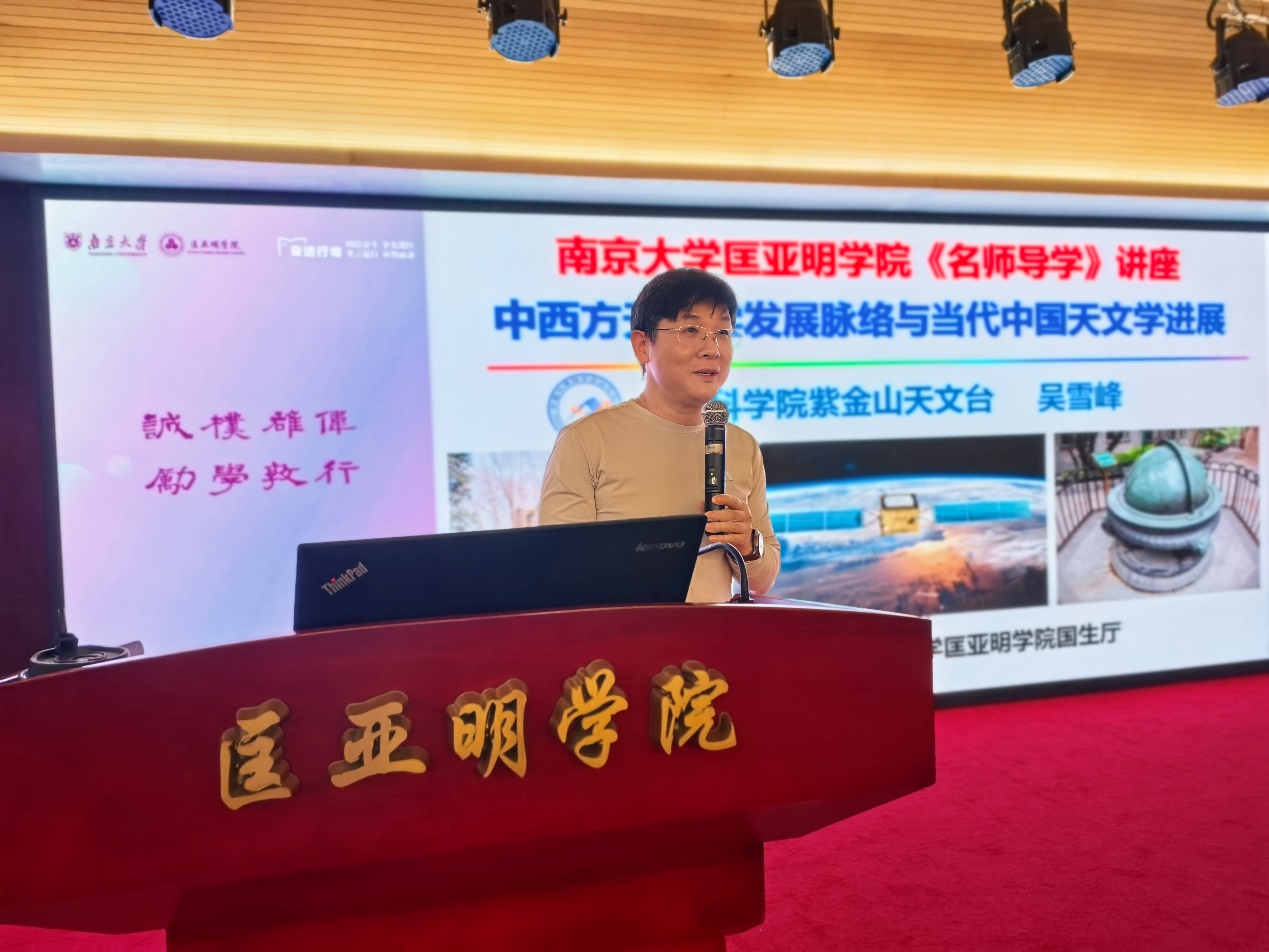 2025年9月24日下午,2025秋季学期的《名师导学》讲座、形势与政策暨“科创筑梦”党团课第二讲在太阳成集团tyc国生厅如期举行。本次讲座邀请到了中国科公司紫金山天文台副台长、太阳成集团tyc96级院友吴雪峰研究员,为太阳成集团tyc的本科生们带来题为《中西方天文学发展脉络与当代中国天文学进展》的精彩报告,并分享了他丰富的科研经历与人生感悟。