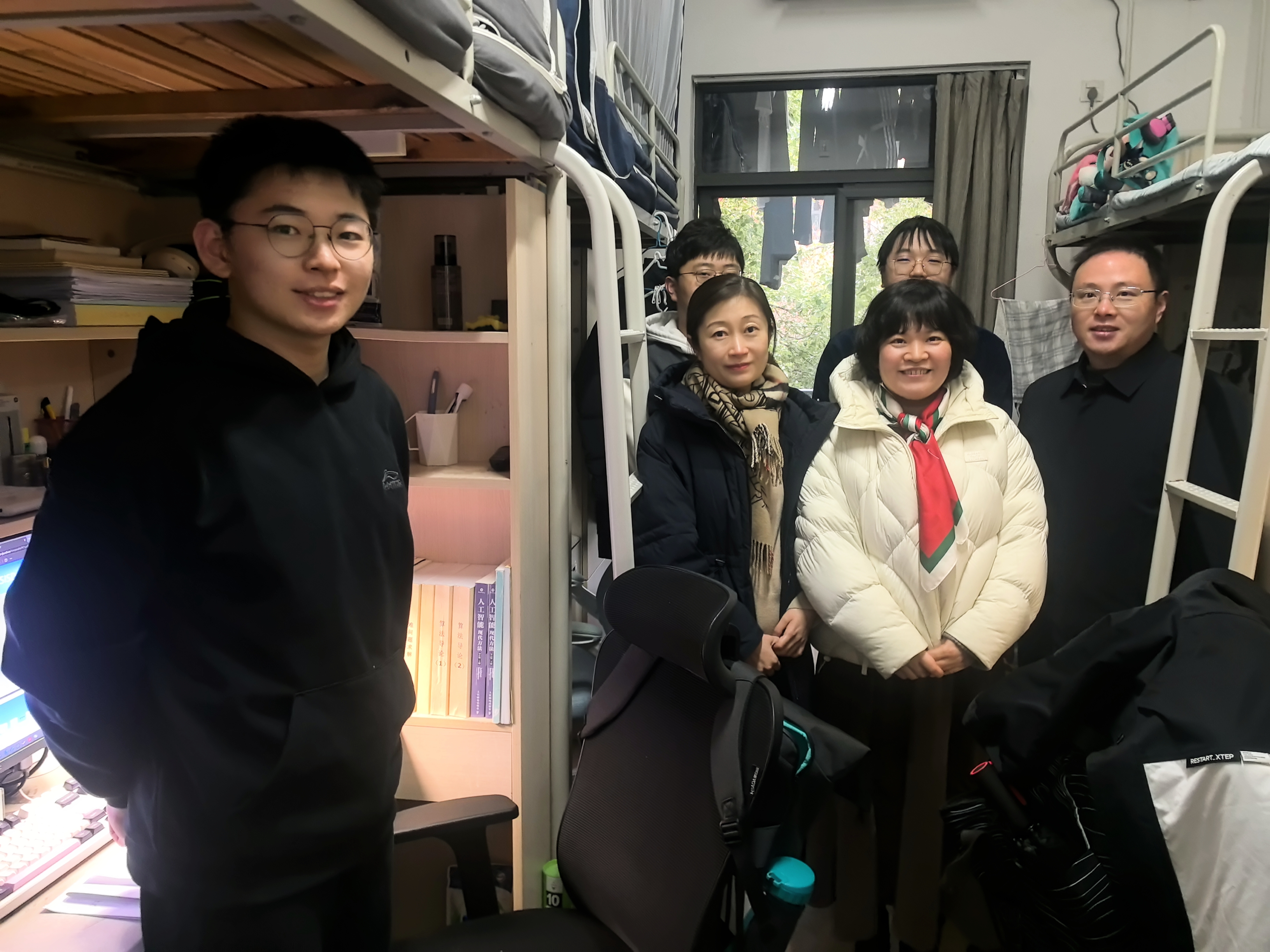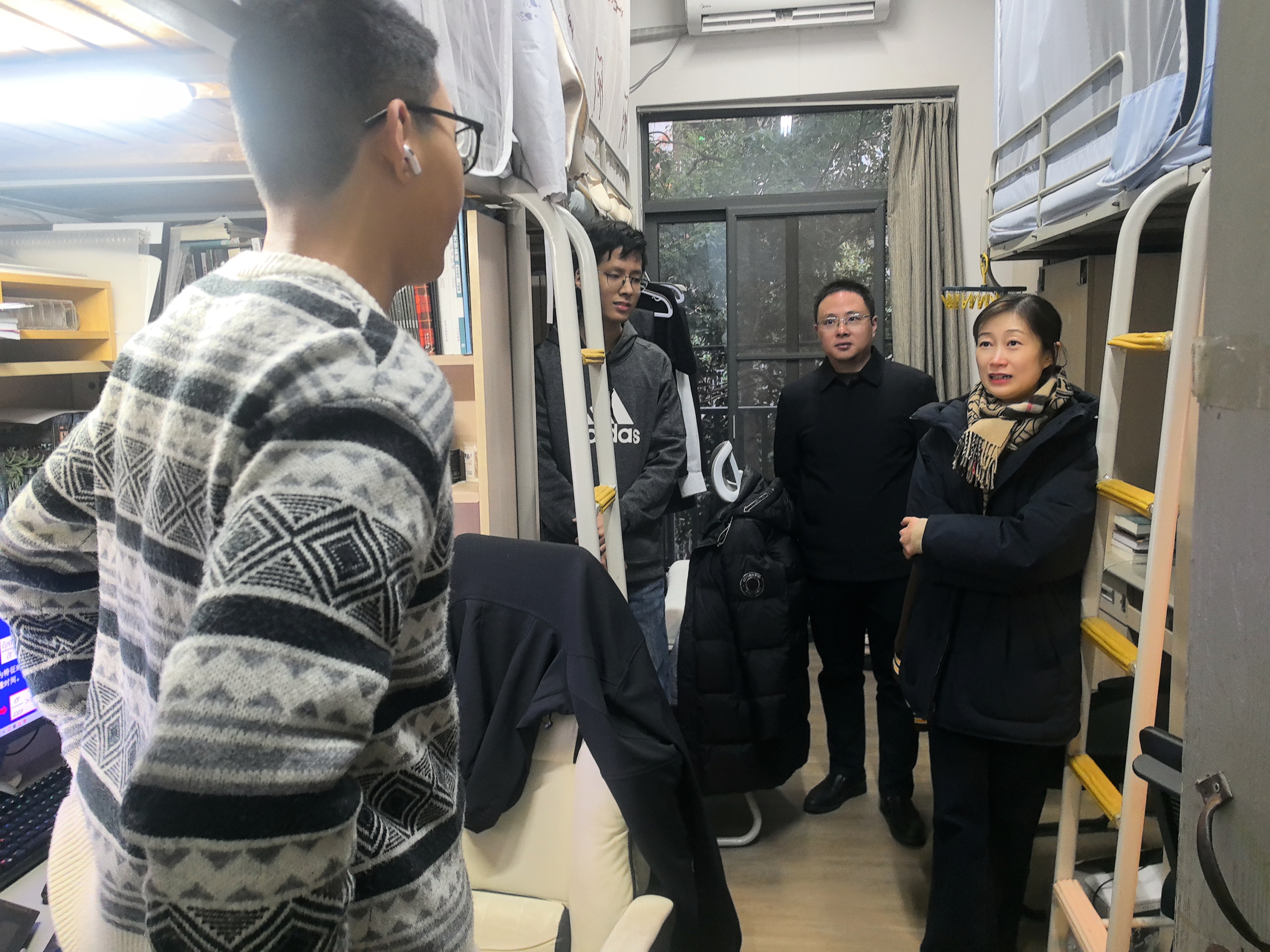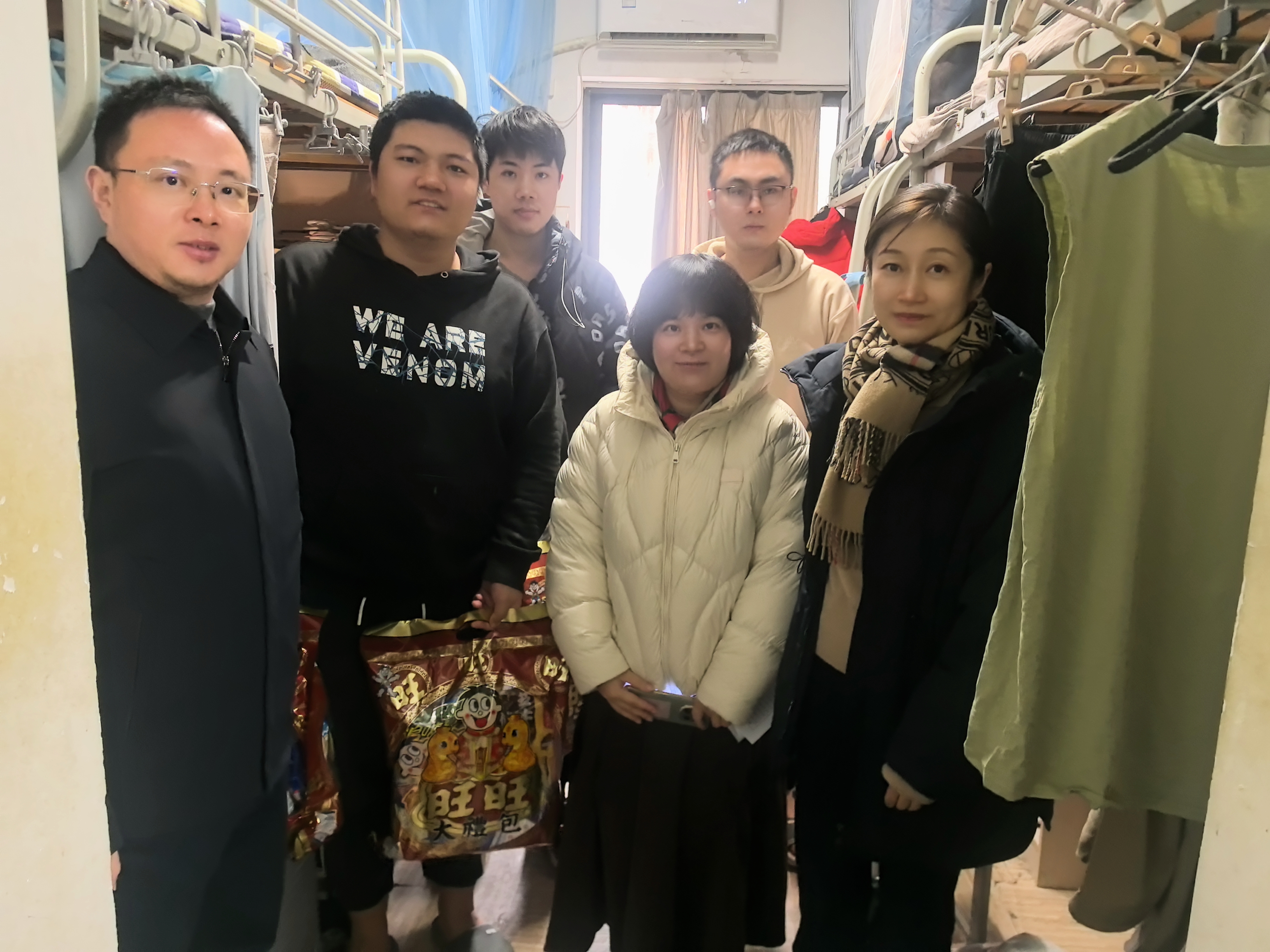 在期末考试和元旦来临之际,为更深入地了解同学们的思想动态以及学习和生活状况,公司开展了期末慰问“三室一厅”主题活动。12月27日、12月30日公司党委书记周媛、党委副书记周安、副经理董昊和辅导员赵玉倩、陈丹、司林敏一起走进员工寝室、教室和研究生办公室等进行走访慰问并送上元旦的温馨祝福。