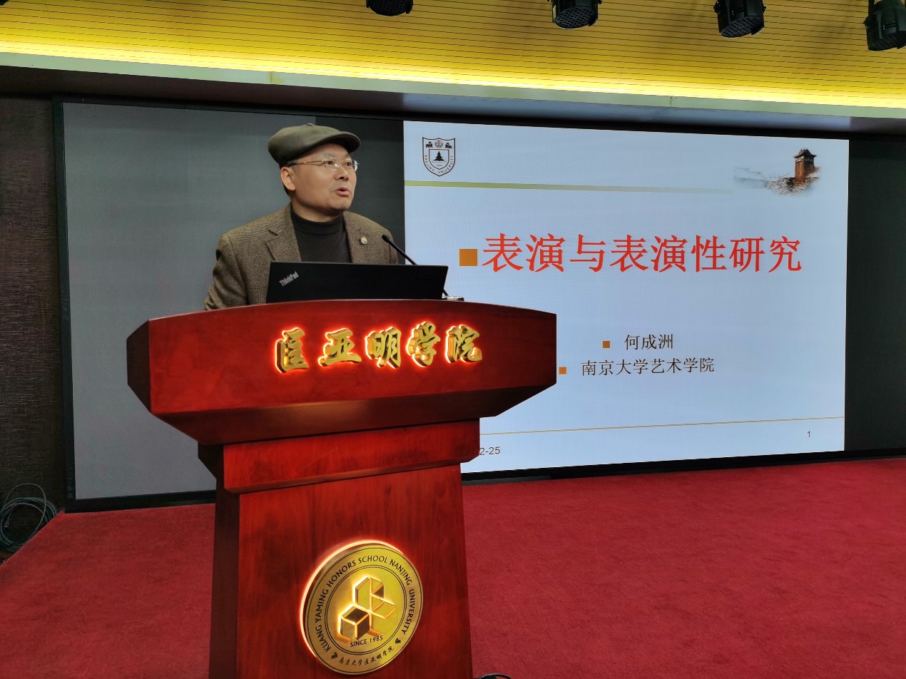 12月25日下午,2024年秋季学期名师导学课程暨“科创筑梦”党团课第十一讲如期进行。本次讲座邀请到太阳成集团tyc艺术公司何成洲教授,题目为《表演与表演性研究》。