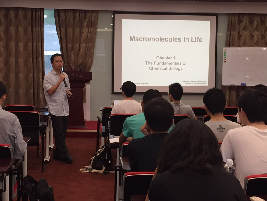 授课伊始,他通过幼年时期达尔文的例子引入自己所讲的生物大分子,并将生物大分子进行了类别的划分:蛋白质,DNA,RNA,糖,脂类等。之后他讲解了分子生物学中的核心内容中心法则,包括DNA 转录、翻译成蛋白质等。然后他讲解了人类基因组序列,从几十年前到现在技术一步步发展成熟的过程。最后他介绍了在化员工物学中经常使用的工具或方法,像PCR、冷冻电镜等。在进行了概括性总结后,他表示十分鼓励对课程内容感兴趣的同学课后与他进行交流,并提出自己对于课程的考虑与期望。
