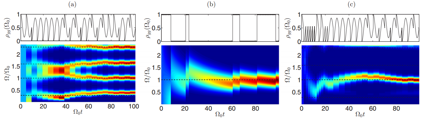 接下来,Klaus Mølmer教授详细介绍了如何通过控制量子测量的时间点,获得最佳的参数估计效果。首先,他向同学们展示了如何通过著名的贝叶斯公式根据测量结果得到体系参数的条件概率分布,引起了同学们强烈的兴趣。在这个方法中,我们可以用Fisher Information来衡量测量结果对体系参数的敏感程度,也就是说体系参数对测量结果的影响越大,Fisher Information的数值也会越大,通过测量结果估计体系参数也会越容易。因此,如何通过调整测量频率使得Fisher Information的数值最大就成为了需要被解决的问题。