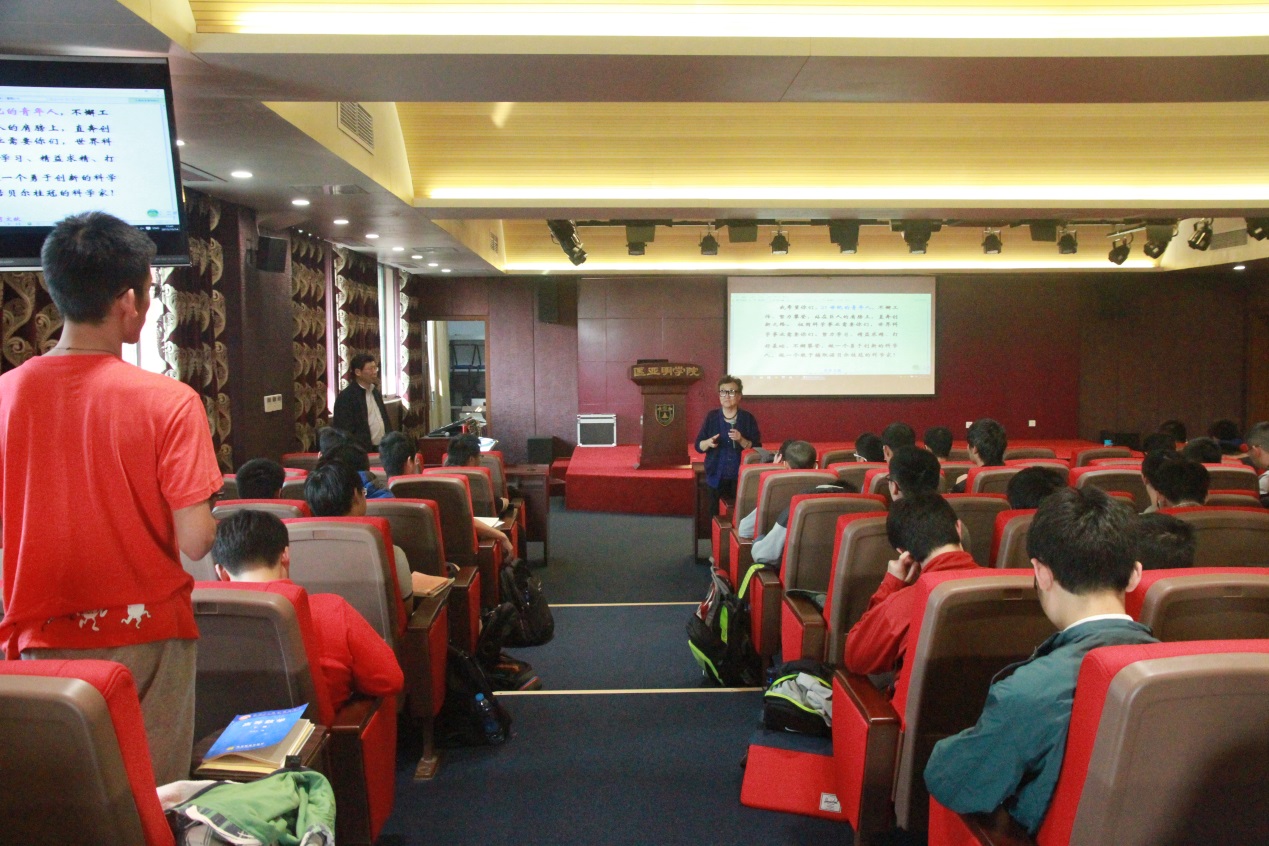 虽已年近耄耋,苏维宜教授却丝毫没有老年人常有的老态龙钟之感,在讲座过程中始终充满了活力,言语铿锵有力,思维严谨,表达生动活泼,十分亲切和蔼。她先从几周前中国药学家屠呦呦获得了诺贝尔生理学或医学奖的事说起,用其年轻时攀登学术道路的艰辛教育我们,想要创新,必须付出巨大的努力;并且借此激励我们,盼望我们下一代人早日夺得菲尔兹奖、诺贝尔物理学、化学、经济学奖等奖项。