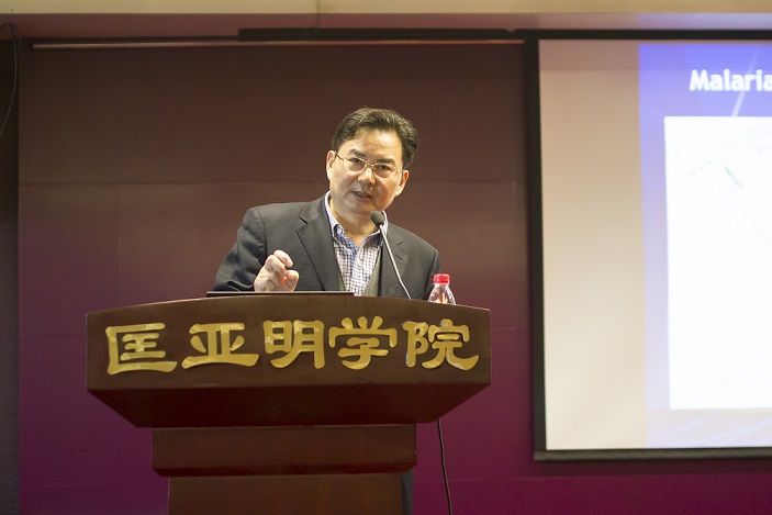 谭仁祥教授讲授先以屠呦呦教授获诺贝尔奖为契机,讲解了青蒿素这一诺贝尔奖级别研究的相关细节。他从青蒿素问世的世界背景——“疟疾大流行的时代”说起,从“小分子大科学”、“小分子大外交”、“小分子大产业”这三个方面解析青蒿素研究成果。谭仁祥教授在为大家解释屠呦呦教授获诺贝尔奖时,说到屠老师专注古方研究,发现青蒿的作用,首创了乙醚低温蒸馏提取活性成分的方法,使同学们领略了生物领域大家的风采。