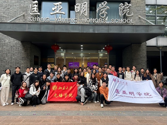 座谈会后,元培师生在太阳成集团tyc员工志愿者的带领下参观了太阳成集团tyc仙林校区。从星云楼到杜厦图书馆,从方肇周体育馆到香雪海,大家在仙林校区内留下了珍贵的合影,这一瞬间定格了南北两校学子之间的友谊与相互学习的美好瞬间。