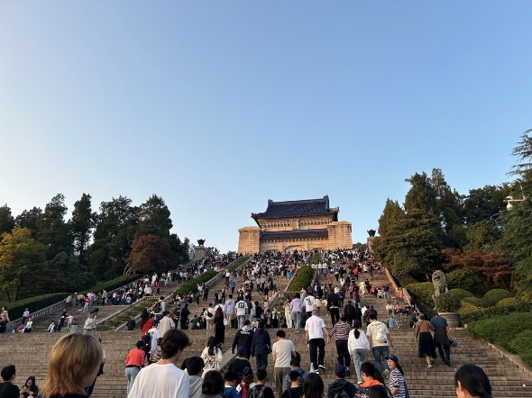 11月2日,元培公司师生与南大匡院的志愿者们一起游览了南京博物馆、中山陵及梧桐大道等南京的标志性景点。在南京博物馆,职工们不仅欣赏了珍贵的历史文物,还进一步了解了南京作为“六朝古都”的丰富历史。在中山陵,志愿者们讲解了孙中山先生的生平及其对中国现代化的伟大贡献,职工们纷纷表示震撼,并对南京的厚重历史有了更深的体会。