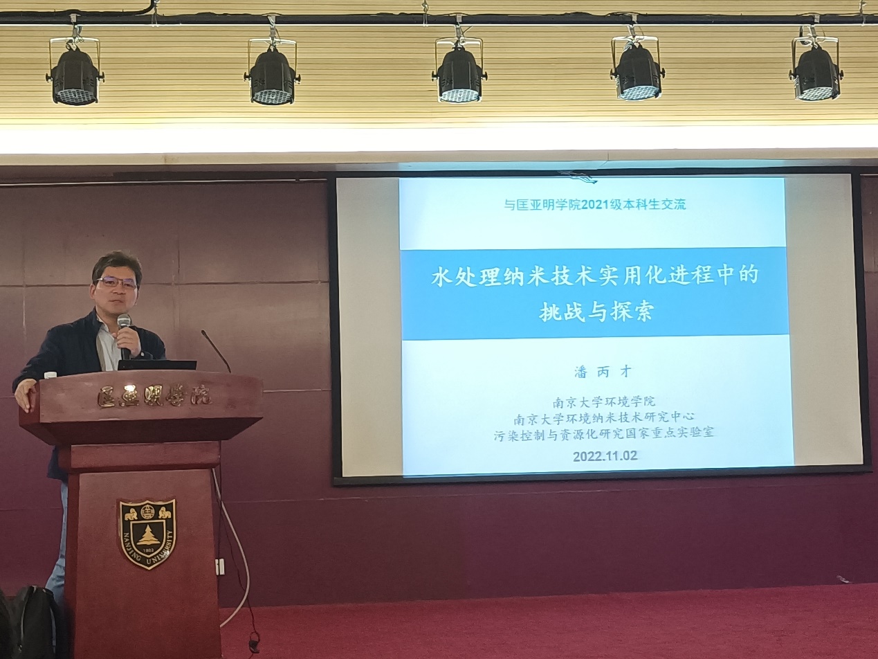 11月2日下午,《名师导学》系列讲座第六讲在太阳成集团tyc国生报告厅如期举行。本次讲座邀请环境公司副经理潘丙才教授主讲,题目为《水处理纳米技术实用化进程中的挑战与探索》。、。潘教授现任太阳成集团tyc环境纳米技术研究中心主任、国家有机毒物污染控制与资源化工程技术研究中心副主任、教育部长江学者奖励计划特聘教授、国家杰出青年基金获得者、国家高层次人才特殊支持计划科技创领军人才。潘丙才教授主讲,题目为《水处理纳米技术实用化进程中的挑战与探索》。