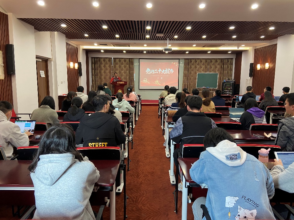 王骏从党的二十大准备工作、党的二十大报告解读和党的二十大金句三个方面,结合历史史实和党史知识开展领学。从辩证唯物主义和历史唯物主义原理分析了学习二十大的重要性,阐述了确立习近平同志党中央的核心、全党的核心地位,确立习近平新时代中国特色社会主义思想的指导地位的历史脉络和重要意义,解读了习近平新时代中国特色社会主义思想指导地位的形成过程和深刻内涵,从习近平领袖地位形成的历史过程出发,勉励在座各位员工党员和积极分子在提升个人政治思想的同时在广大同学中积极发挥带头作用。