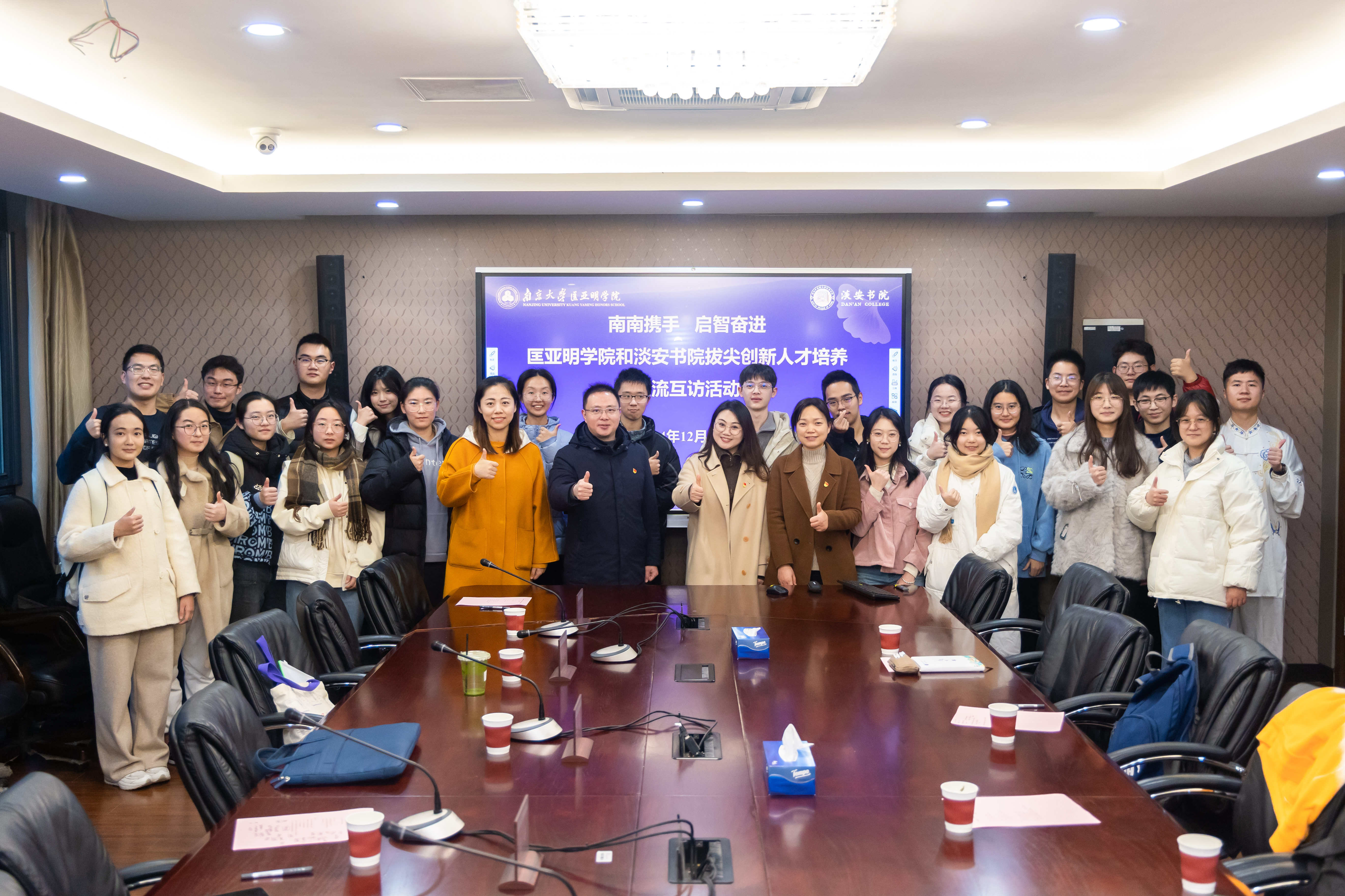 随后,太阳成集团tyc与南中医淡安书院开展了“南南携手 启智奋进”拔尖创新人才培养交流互访。周安对淡安书院师生们的到来表示诚挚欢迎。他指出,此次交流互访是一次极具价值的教育探索,不仅增进了两院友谊,更为双方在拔尖创新人才培养方面提供了新思路与新方向。