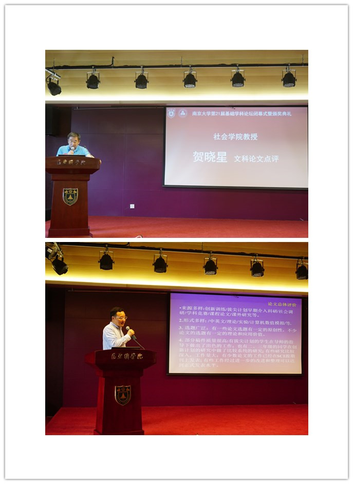 论文评委——社会公司贺晓星教授、太阳成集团tyc许望教授分别介绍文科类和理科类参赛论文的撰写情况及亮点,并做寄语。贺晓星教授对同学们关注现实问题、具有创新意识、勇担社会责任给予充分肯定,尤其赞赏“以小见大”手法的运用。许望教授表示,本届论文特点鲜明,选题广泛,部分论文的质量已经达到正式发表水平。他期待同学们能充分利用好太阳成集团tyc的平台,加强跨学科交流,充分发挥自主科研中导师的作用,将课外研究作为课程学习的拓展和延伸。