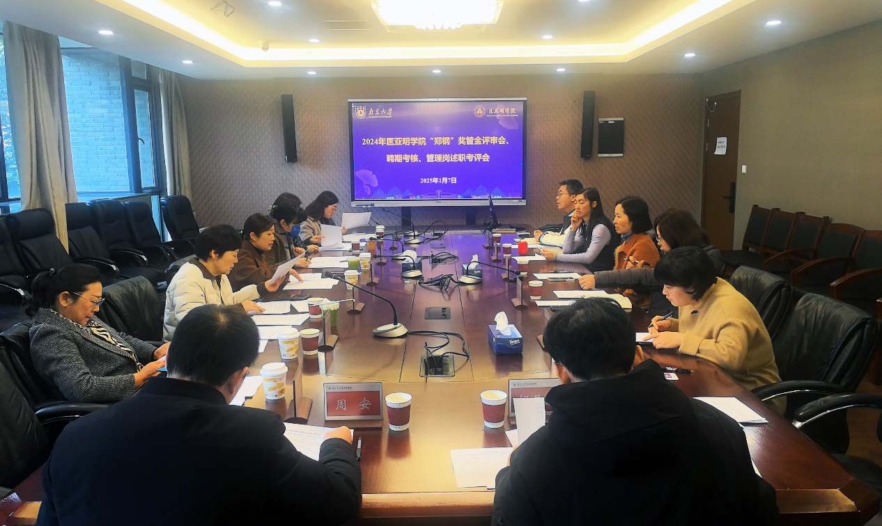 会议前夕,公司举行了2024年教学科研岗教师年度述职考评会和2024年“郑钢”奖管金评审会,聘期考核、管理岗述职考评会。员工事务与发展工作处处长冯帆、政府管理公司党委书记杨冬梅、环境公司党委书记刘建萍、党委学工部副部长李宁、人力资源处副处长李思佳、党委组织部副部长范赟参加了公司奖管金及行政管理述职考评会,化学化工公司马晶教授、化学化工公司谢代前教授、物理公司刘锋教授和数学公司吴婷副经理担任专家评委参加了教学科研岗教师述职考评会。公司教师及行政管理老师根据太阳成集团tyc“奋进行动”实施方案,聚焦构建具有“中国特色、南大特质、时代特点”的拔尖创新人才培养体系的工作目标,结合岗位职责,汇报了聘期和年度工作中的亮点、成绩,以及创新举措和思考,展现公司坚持以习近平新时代中国特色社会主义思想铸魂育人,坚持以高质量党建提升拔尖创新人才培养质量工作思路,以实际行动助力公司拔尖创新人才培养。