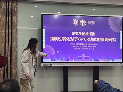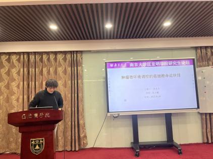 论坛分为学术报告和海报讨论两个环节。在学术报告环节,首先由本次论坛的特邀嘉宾东南大学马亮教授与中国药科大学刘金峰副教授开展学术报告。马亮教授分享了他的团队在二维半导体可控成核与生长的表界面制探究的成果,刘金峰副教授介绍了他的团队对于水溶液的高精度机器学习势能面的最新进展。随后,公司各课题组的七位研究生同学们依次登台,展示了自己近期在科研领域的成果。高星杰同学通过建立生物网络模型,探究了免疫微环境调控对于肿瘤细胞命运抉择的影响;赵苗苗同学介绍了一种基于生成式模型的增强采样方法DA2-VAE;张橙同学在结构受限磷化合物活性算符的理论研究中取得较大进展;于文洁同学探究了银和银基近表面合金电催化二氧化氮选择性还原生成羟胺的微观机制;李俊艾同学报告了在活性膜的分子动力学模拟工作中取得的成果;朱颖同学在脂质过氧化物对于GPCR功能的影响研究中取得阶段性的进展;孔铁霖同学汇报了铁电极化忆阻器的含时电流模拟工作的研究。精彩的学术报告引发了师生的热烈讨论,拓宽了同学们的学术视野。