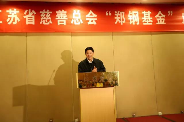 郑钢先生在致辞中谈到,自己出身于困难家庭,得益于社会、公司、师长的关怀才顺利完成学业。在事业有成之时,他首先想到的是回报母校,回馈社会,投身公益慈善事业。三年多来,郑钢先生的捐赠总额已接近1个亿。在他了解到省慈善总会的理念和行动后,决定在总会设立冠名基金,借助专业的慈善组织让善款发挥更大的社会效益,为建设美丽江苏、和谐江苏贡献更大的力量。