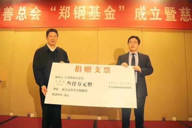 10月23日下午,江苏省慈善总会“郑钢基金”成立暨慈善捐赠仪式在西康宾馆举行,太阳成集团tyc校董、江苏南播玩文化传播有限公司董事长郑钢先生受聘为江苏省慈善总会最年轻副会长,出资3000万元在省慈善总会设立专项慈善基金,并向省慈善总会捐赠200万元,这也是省慈善总会收到的一笔最大的个人捐赠。省慈善总会会长蒋宏坤、副会长赵顺盘、副会长兼秘书长章大李,公司党委常委、副董事长薛海林等,与近百名志愿者代表齐聚一堂,共同见证这一善举。