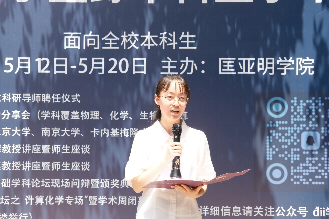 最后,首届国家自然科学基金青年员工基础研究项目获得者、2020级本科生孙宇轩同学分享了个人的科研经验。孙宇轩表示,在进行科研训练时,要积极尝试,敢想敢做。在实验过程中发现问题时,阅读文献和教材是非常重要的。文献代表的前沿的内容,可以启发我们产生想法;而教材上的知识可以帮助我们更好地理解文献的内容。初读文献可能有些晦涩难懂,但认知是螺旋式上升的,多看几次就会逐渐产生自己的理解。此外,她还给我们分享了基金项目申请的经验。