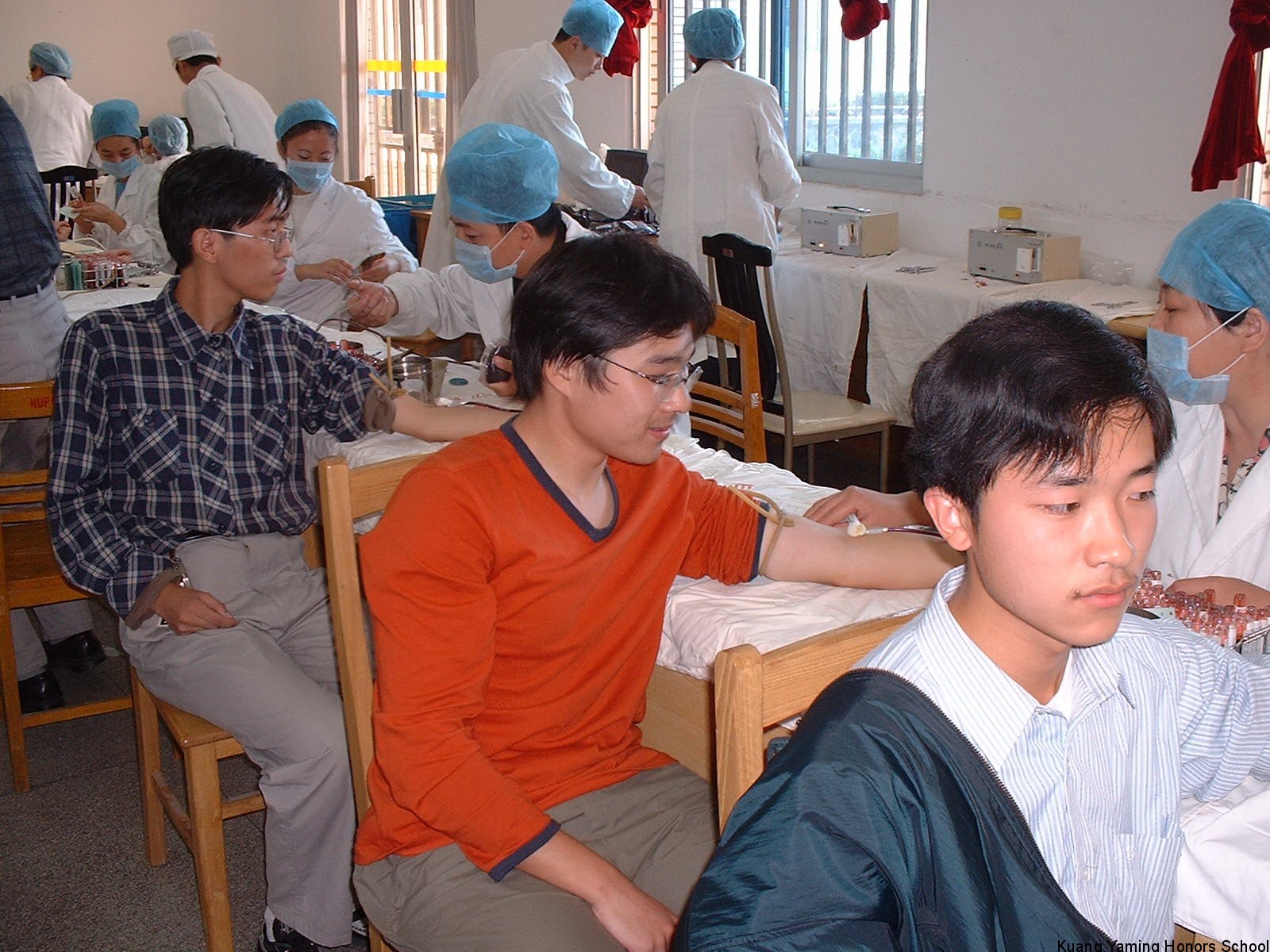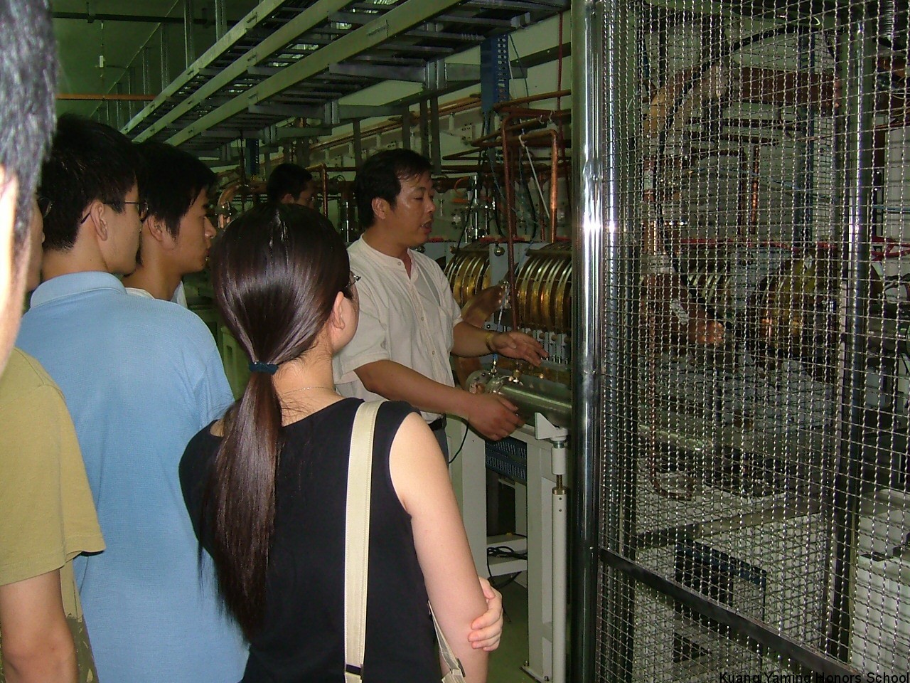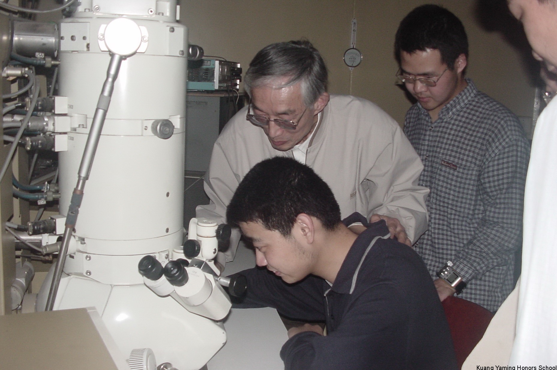 1998级理科班员工在老师指导下进行大型仪器的操作