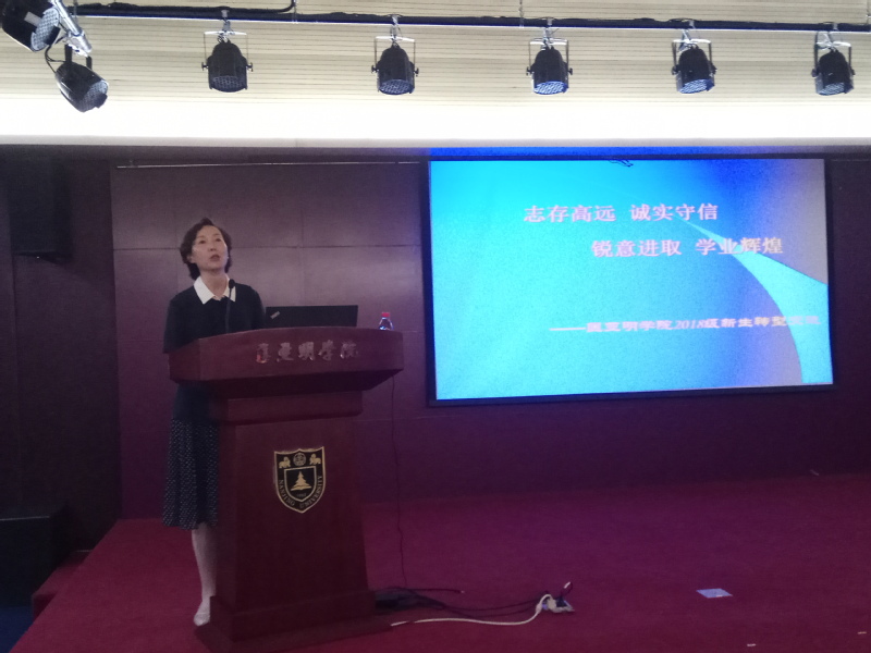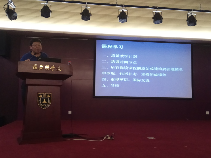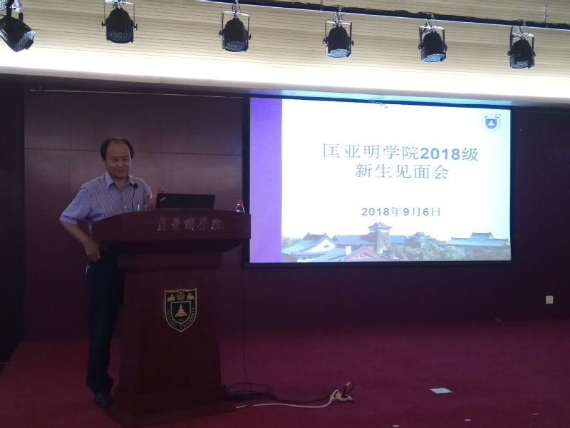吴盛俊老师则向全体新生介绍了大学与中学在教学内容、教学方式等方面的不同点,指出新生的普遍认识误区,教导新生认清兴趣与能力的矛盾,顺利完成大学学业,努力创造个人成功。