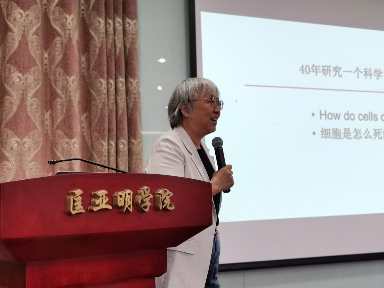2024年5月19日下午,公司邀请美国艺术与科公司院士、美国国家科公司院士、中国科公司外籍院士、中国科公司上海有机化学研究所生物与化学交叉研究中心主任袁钧瑛教授来院做学术报告。报告前,袁院士及团队成员与同学们亲切座谈,随后袁院士为大家带来了题为《三进科研无人区,探索细胞死亡的秘密》的学术报告。该报告也是“2024小蓝鲸本科生学术周”的系列活动之一。
