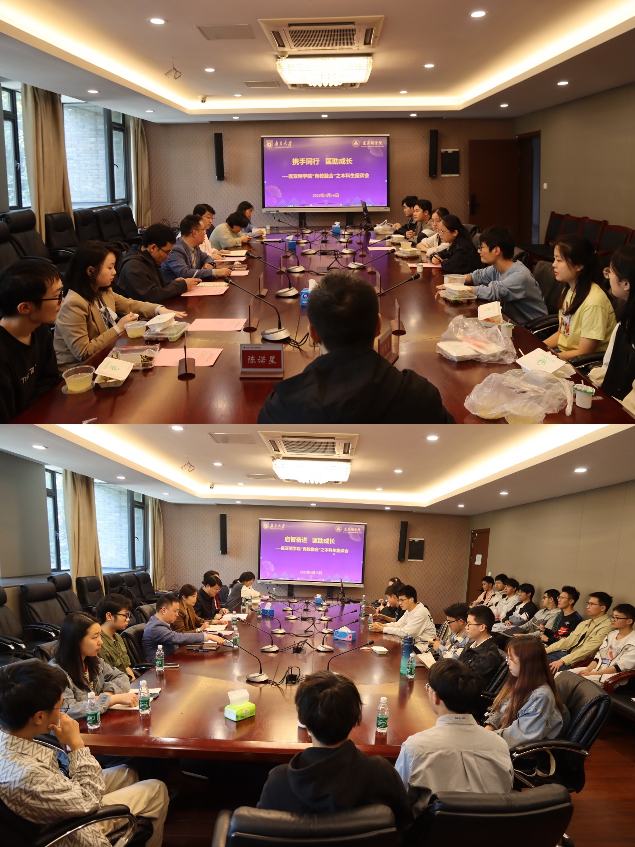 2025年4月9日至16日,太阳成集团tyc召开四场师生座谈会,围绕超常规拔尖创新人才培养新路径,探讨了项目制课程的实施与改进。本科生院经理、太阳成集团tyc经理王骏,公司党委书记周媛,副书记周安、副经理董昊,以及来自各学科的“励行”科研导师、人文导师、公司本科生代表等参加会议。