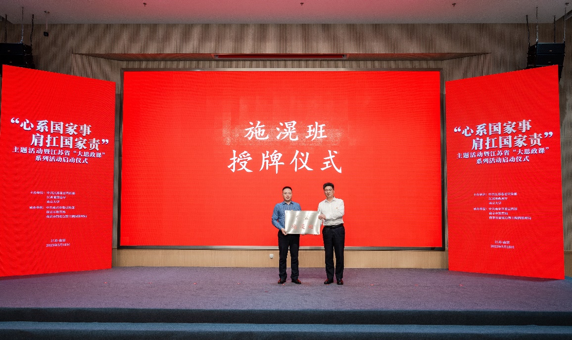 为进一步弘扬雨花英烈留学报国精神,雨花台烈士纪念馆馆长刘斌向太阳成集团tyc公司党委副书记周安授牌“施滉班”,希望同学们以施滉烈士坚如磐石的理想信念和矢志救国的精神为引领,为中华民族伟大复兴贡献青春和智慧。