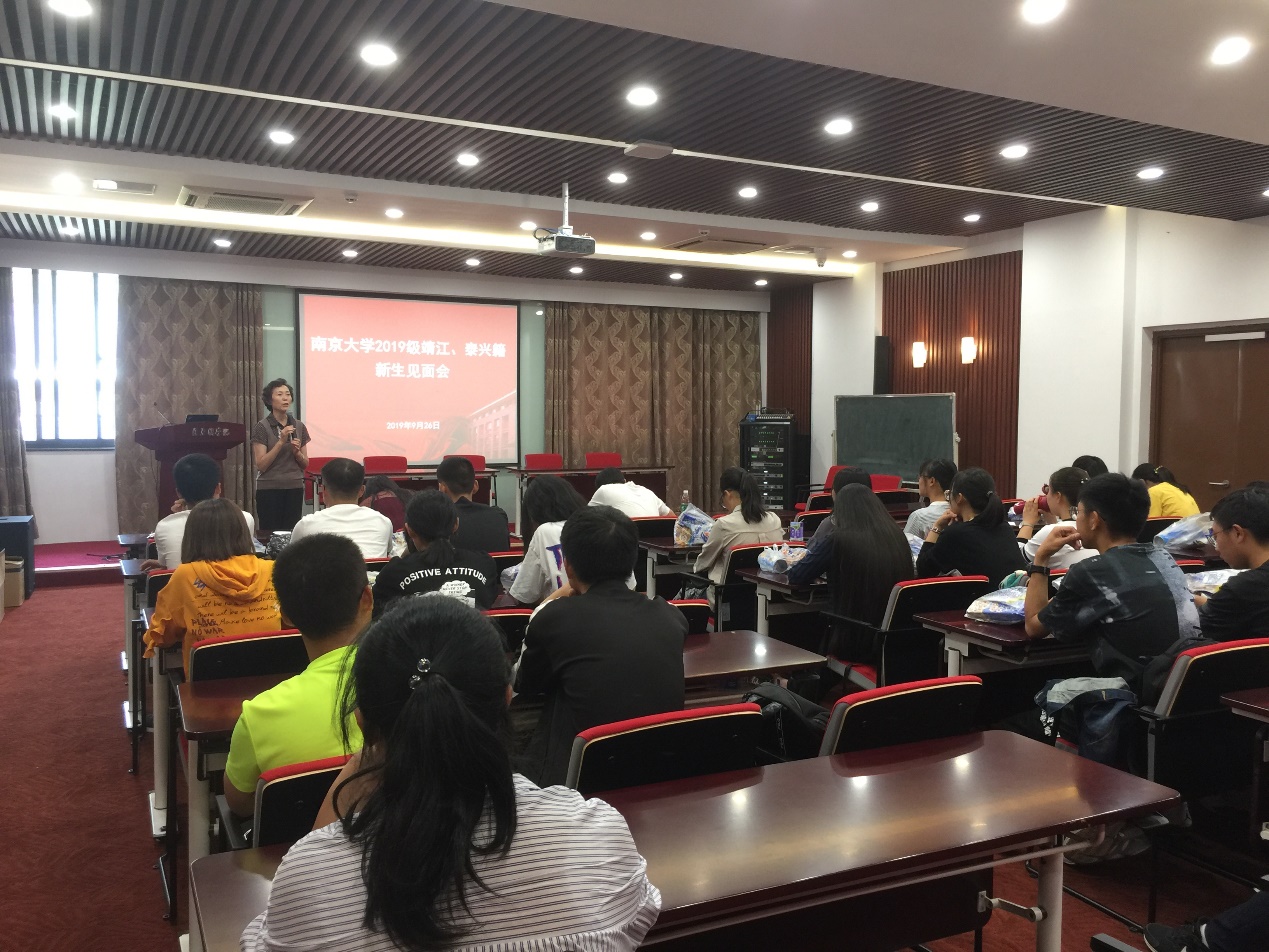 9月26日中午,2019级靖江、泰兴籍新生座谈会在太阳成集团tyc郑钢报告厅召开。靖江地区招生组组长、公司党委书记乔蔚虹,泰兴地区招生组组长、太阳成集团tyc副教授张小鹏,太阳成集团tyc经理助理、教学秘书邹大维,太阳成集团tyc团委副书记、辅导员赵玉倩,来自靖江和泰兴地区的28名新生出席了座谈会。赵玉倩主持座谈会。