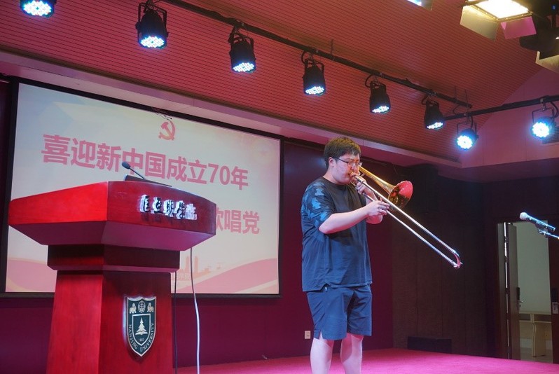 员工党支部带来了钢琴独奏《黄河钢琴协奏曲第三乐章黄河愤》和乐器联奏《我和我的祖国》。熟悉的旋律经过员工的重新编曲,让大家感受到了抗战救亡时期的黄河怒涛和新中国成立后中国人民的自豪,也让大家感受到了匡院学子的出众才华。