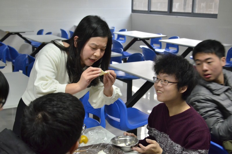 游戏结束后,同学们前往四食堂包饺子。在辅导员赵玉倩老师的悉心指导下,许多原本不会包饺子的同学,也迅速领悟了要点。我们包的饺子有些中规中矩,有些造型独特,有些甚至被放入了“不寻常”的佐料。待到饺子出锅,大家吃着自己的劳动成果,纷纷感叹这是吃过最好吃的饺子。