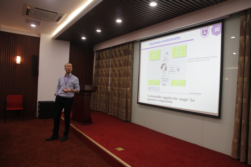 21日进行大会报告,首位邀请报告人是德高望重的中国科大的张永德先生,张先生把现代量子理论的疑难争论问题一共总结了40个,高屋建瓴地把量子理论的各自疑难杂症和发展所面临的问题呈现给大家,因为时间关系,张先生只来得及讲述其中的前10个问题,剩下的留待22日下午的讨论。张先生的报告掀起了大家对量子理论基础的兴趣,一位听报告的本科生深深感叹:感觉自己以前学到的是假量子力学。陈增兵教授报告了量子神经网络与软量子计算,陈老师把量子力学用于神经网络,提出了软量子计算的框架,现场和茶歇讨论都很热烈,生科院的朱教授专门赶过来同陈教授讨论。来自香港科技大学的孟国武教授从经典牛顿力学的开普勒问题出发,揭示了后面隐藏的丰富的数学物理,引入了第二个时间的维度,并借用洛伦兹变换的方法及其简洁地得到了牛顿力学较难得到的结论。来自中国科大的郁司夏教授从概率分布、关联等方面探讨了量子力学的边界,把物理上的关键问题用严谨的数学表达出来,并给出了多种可能的形式,郁老师不愧为量子信息理论领域的超级数学玩家。
