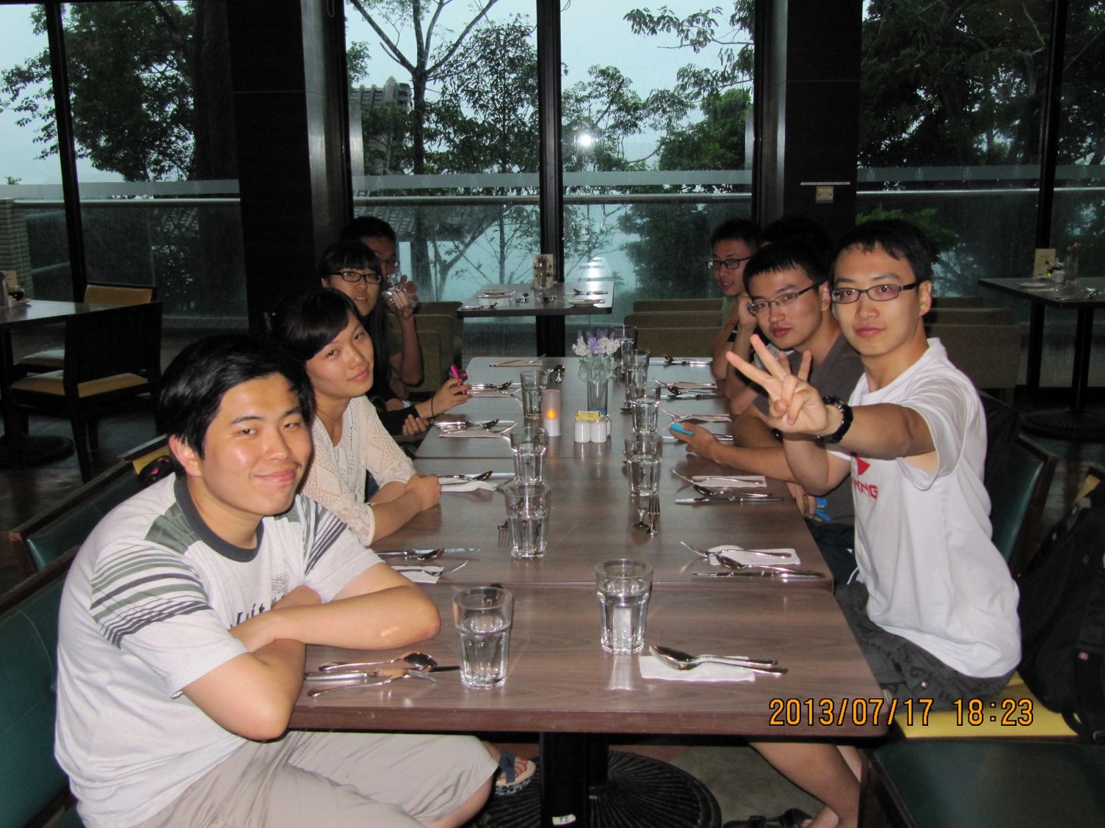 晚上是理公司夏令营的聚餐时间,在这里夏令营全体师生齐聚一堂,欢声笑语,气氛十分融洽,利用聚餐的机会我们跟港科大的教授们有了更进一步的交流。