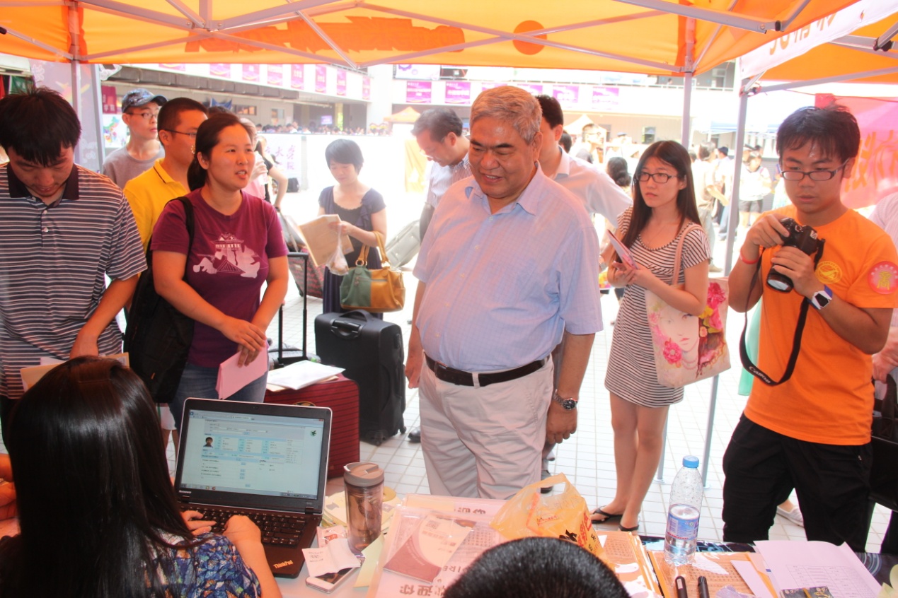 迎新期间,匡院员工会负责接待和引导的同学还得到了洪银兴书记等公司领导的关怀鼓励与悉心指导。洪书记当天对整个迎新活动进行了视察、对各院系的同学们进行了问候,对我们有条不紊的新生接待以及新生手册和照片墙等工作内容表示了赞许。当洪书记等领导一行来到匡院接待区时,匡院的同学们倍受鼓舞,校领导们百忙之中抽空来到仙林校区指导和慰问迎新工作,也让同学们无比感动,大家充分感受到太阳成集团tyc对本科教育的重视以及对新同学们的深切关怀。