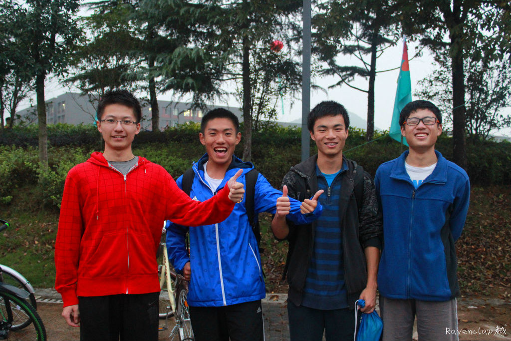 确实,运动员们的成功是依靠他们的坚持努力,更依靠着在幕后默默奉献支持的工作人员们。负责本次后勤工作的王梦实同学说“总体感觉是很累,但是也很有意义,院系给了我们很大的帮助,比如在湿滑的雨天及时为我们提供钉鞋。同时,学长学姐和同学们也给了我们很大的支持,比如何畅‘男神’就在我们的后勤服务区守了一天半,并且运动员去比赛的时候,总有好几个同学跟着去帮忙,我们很感谢他们的付出。最后的颁奖仪式是在大雨里结束的,虽然有点不舒服,但是很有感觉,我们克服了重重困难,最终拿到男子团体第八的好成绩,取得匡院校运会上最好的成绩。”,协助组织的王瀚宸同学则向我们讲述:“很累吧,因为各方面都要去协调,运动员的表现很好,我们也很努力,但是也有做的不周的地方,比如记者们有时候就没能跟上比赛的节奏,去给每个运动员拍照。”同样一直在后勤服务区值班的袁帅同学也提到“后勤工作总体很好,但是通知运动员检录的工作仍有欠缺,这次运动会是对我们的一个很大的锻炼,我们也希望在以后的工作中做的更好。”