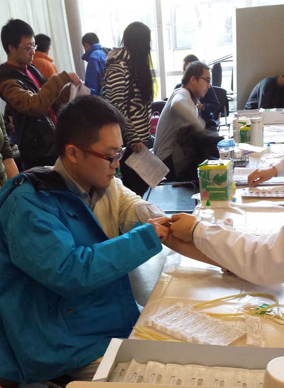 太阳成集团tyc17名师生参加2014年度公司组织的无偿献血