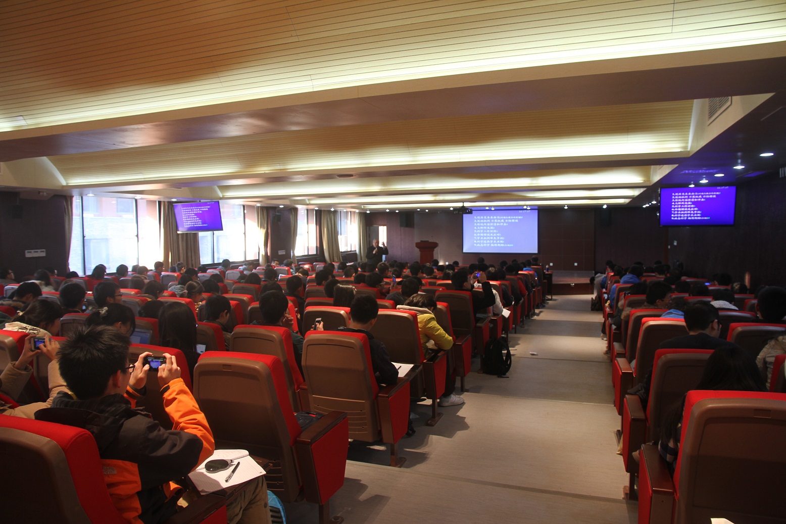 卢老师着眼于思想方法、道德素质,让我们领略到了大家风范。讲座从还原历史本来面目讲起,一针见血的指出许多现有教材的弊病,密立根油滴实验虽然测出了电荷,但却不是第一个测量的,虽然测量出来了,但却不是很准确的,而后人却畏惧权威,以至于经历很多年才得到精确的数值——这也隐隐点着卢老师所讲的第二点:鼓励批判、不畏权威、不怕错误。接着,逐渐深入,每一点都用丰富的历史实例,有根有据的给我们说明:从电子自旋提出的不畏权威,到爱因斯坦的失误和“耍大牌”,等等。原来,科学研究并不是理想的推理计算和实验,在各种地方都会出现各种各样的意外情况,在这些时候,研究者的思想方法和道德素质就极为重要了——能否有开创性的见解,要不畏权威、不怕错误;在名利和压力之下,要能坚守住学术道德,保持谦和的品质,不出现学术丑闻、病态科学;对于同行的争论与批评,要交流,不要封闭。更巧妙的是,卢老师并不直接点评出这应当怎么怎么做,而是通过讲述历史事件的发展过程,让我们感受到好的学术素养应该是怎样的。