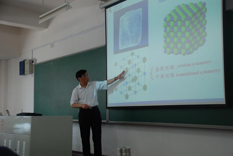 祝世宁院士以“物含妙理总堪寻”为题为同学们讲述了科学的奥秘,非常有大家风范,他先从固体物理的知识讲起,继而循循善诱地为大家讲述了晶体结构的一系列内容,然后引出了“准晶”这一主要话题,旁征博引,结合化学和数学的思考方式,让大家感受到各学科的无穷魅力,特别是准晶研究中涉及到的Fibonacci数列、黄金分割以及五重对称等知识,给人科学的美感。最后祝世宁院士还特意教导同学们要学好各学科知识,打好基础,因为“交叉是最新知识的源头”。这场讲座让在座的同学甚至老师都获益良多。
