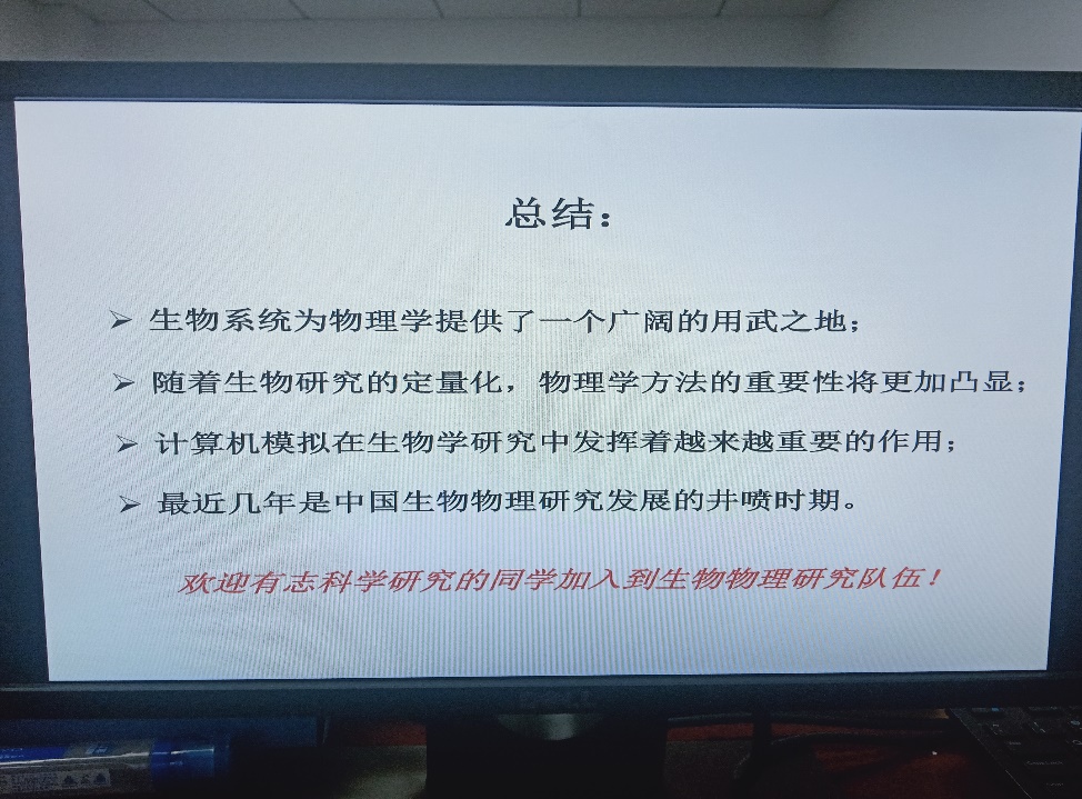 这次讲座拓宽了同学们的视野,加深了同学们对于生物物理以及计算机模拟的印象。相信不少同学听过讲座后都获益良多。