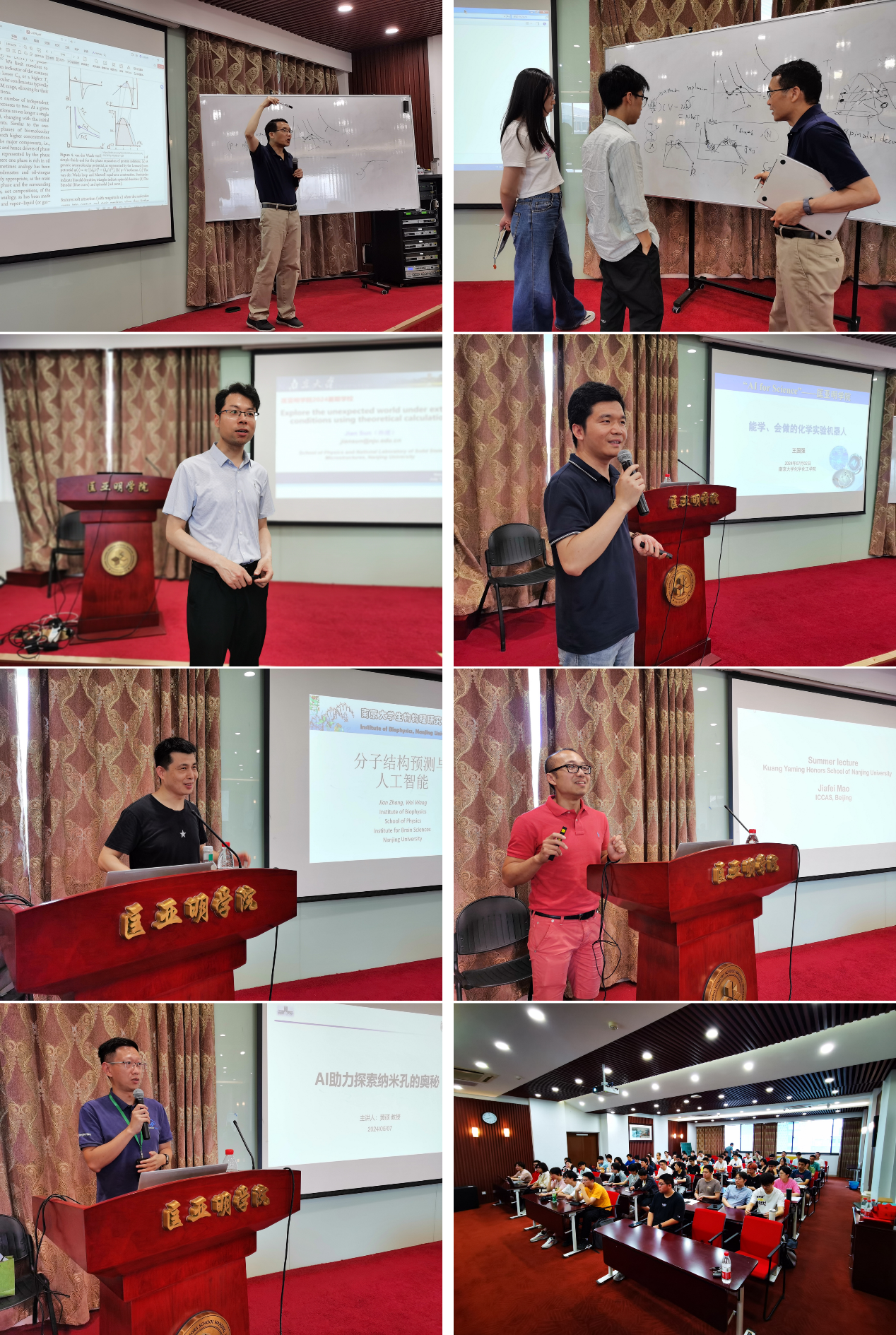 “AI for Science”系列讲座邀请了来自物理、化学、生物等领域的学者,围绕人工智能方法在各自领域的发展和应用进行讲授。公司物理公司教授、国家杰青孙建老师介绍了《基于机器的材料模拟方法及其在交叉学科中的应用》;公司化学化工公司王国强副教授介绍了《能学、会做的化学实验机器人》;公司物理公司张建教授介绍了《机器学习与RNA结构预测》;公司01级院友、中国科公司化学研究所毛佳飞研究员介绍了“Unraveling the molecular mechanisms of membrane proteins -a journey through mentorship, collaboration and community”;公司化学化工公司教授、国家杰青黄硕老师介绍了《AI助力探索纳米孔的奥秘》。这些专题报告展示了不同人工智能算法的基本原理以及在不同领域的应用方式,揭开了人工智能的神秘面纱,帮助同学们建立人工智能在科学研究应用中的全景概念,拓宽学术视野、激发科研兴趣。