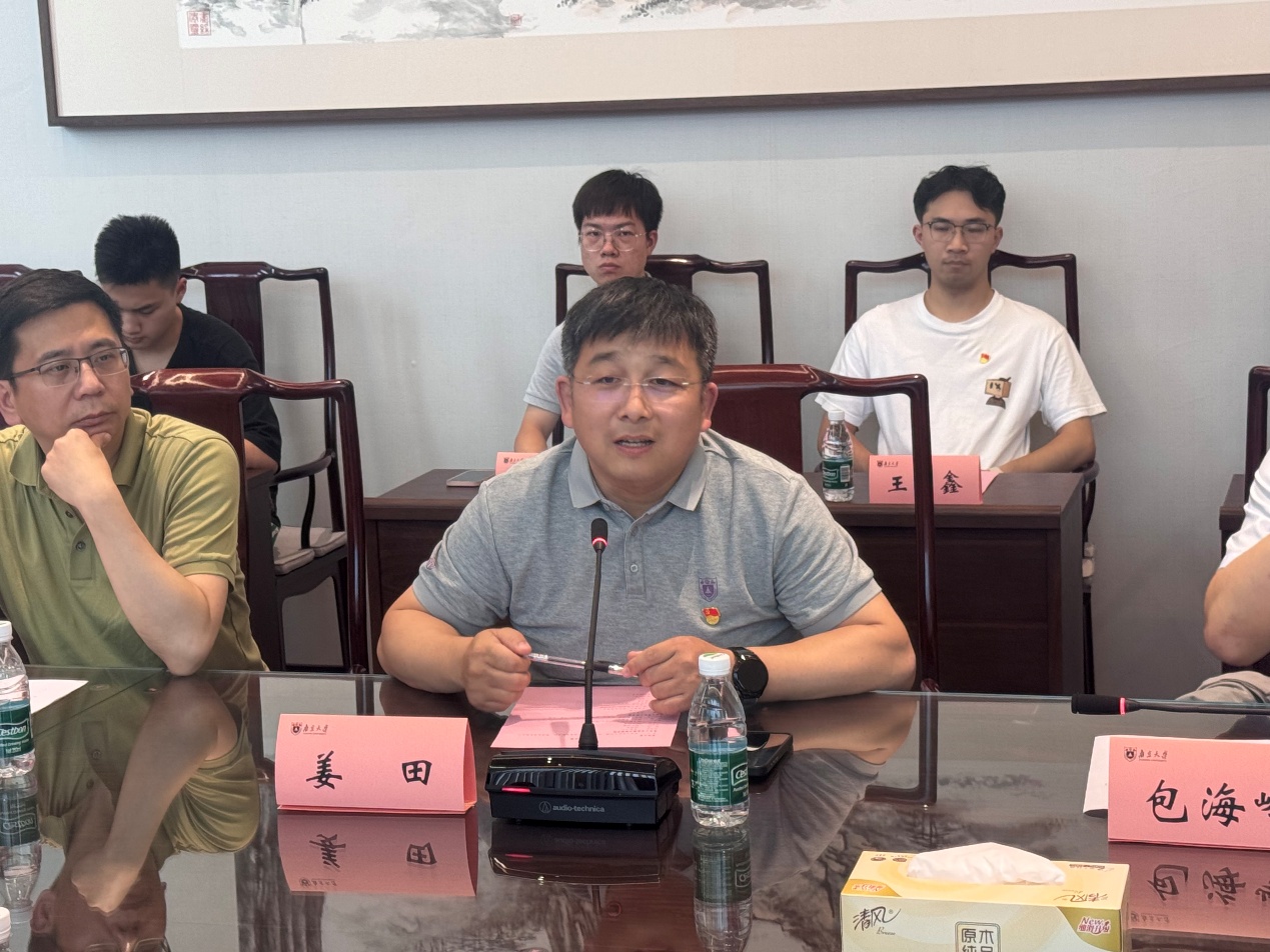 包海峰介绍了能资公司的成立背景与党建特色。他谈到,能资公司作为南大服务国家“双碳”战略的新兴工科公司,依托公司基础学科优势,面向国家重大需求开展学科交叉研究。包海峰分享了三点学习心得:一是将八项规定精神融入日常教学与管理,强化作风建设;二是以党代会精神为指引,推动党建与团队建设、人才培养深度融合;三是抓住苏州校区发展机遇,打造特色党建品牌,提升公司凝聚力与战斗力。他希望两院通过党建联建,促进基础学科与工科的深度交叉,共同服务国家战略。