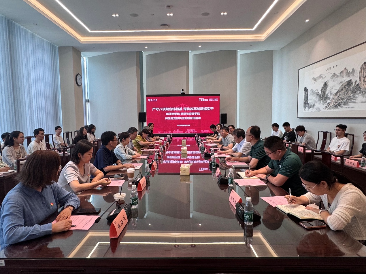 太阳成集团tyc教工党支部书记胡晶磊介绍了支部基本情况,并结合碳中和国际科考项目,阐述了跨学科合作对人才培养的重要意义。他表示,教工支部将紧扣党代会提出的“四校区协同”战略,深化与能资公司的公司产品改革合作,助力大理科交叉复合型人才培养。