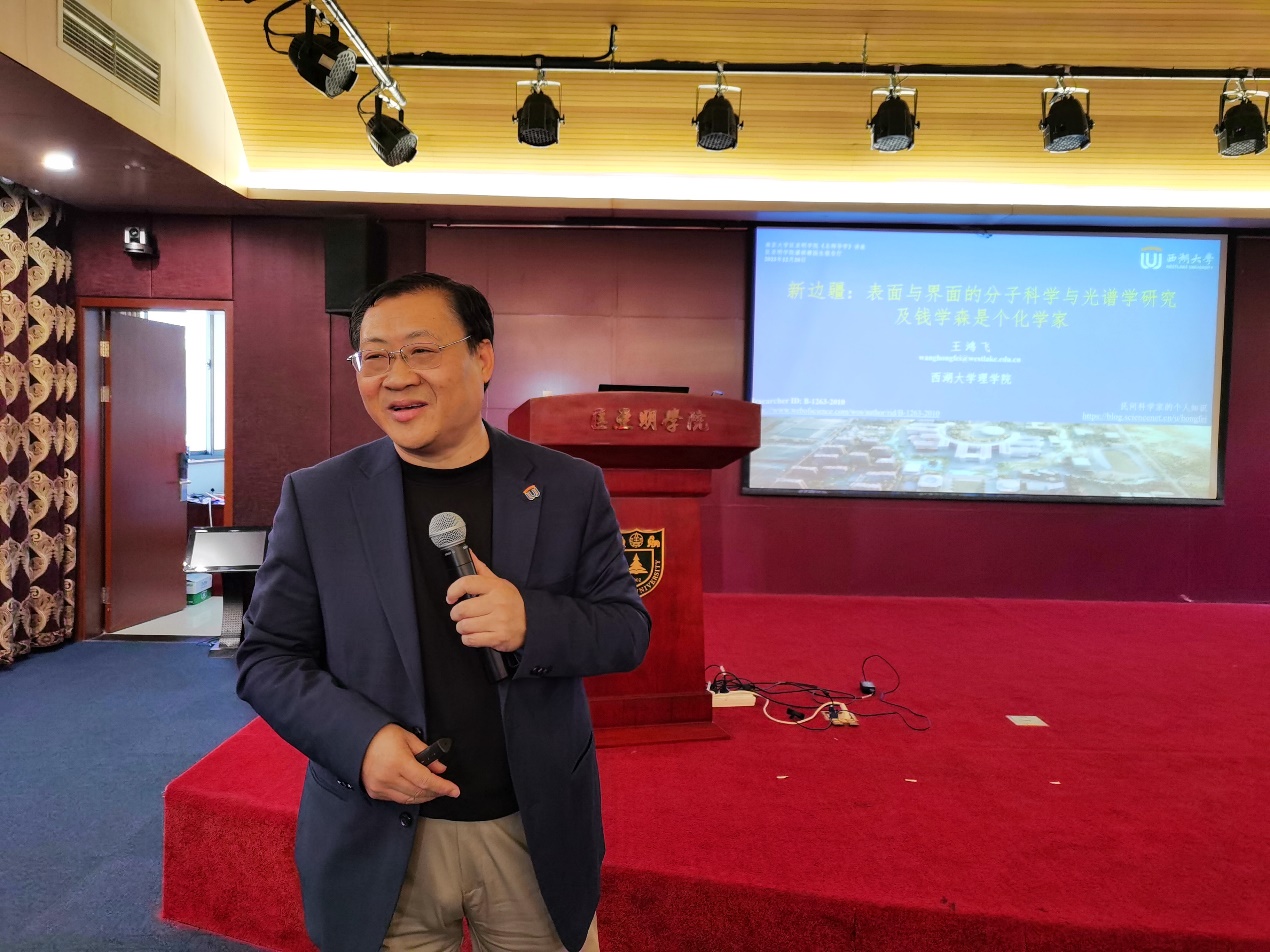2023年12月20日下午,《名师导学》课程系列讲座第十讲在公司国生厅如期举行。本次讲座邀请到西湖大学理公司化学与物理教授王鸿飞老师。王教授先后入选美国物理学会会士、中国科公司百人计划、基金委杰青、上海市第六批“海外高层次人才”专家、中组部第十四批“海外高层次人才”专家。讲座题目为《新边疆:表面与界面的分子科学与光谱学研究及钱学森是个化学家》。