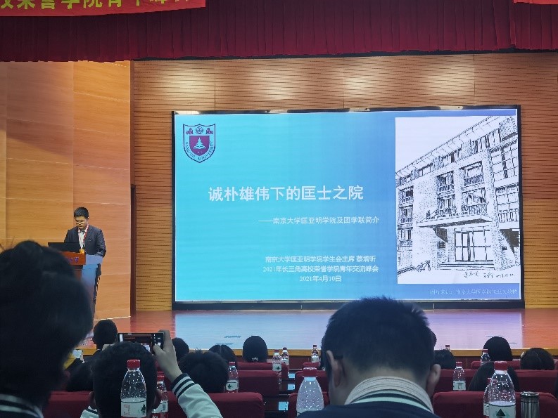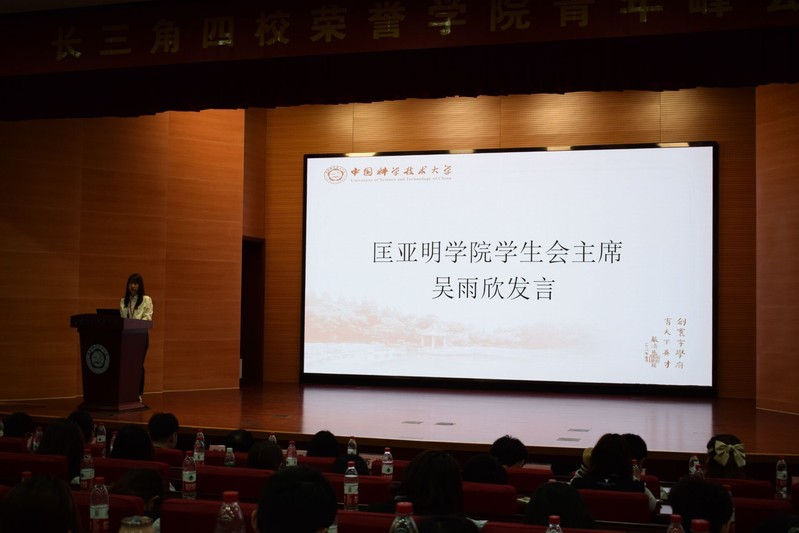 主席团成员蔡增昕同学进行汇报各校报告结束后,开幕式也渐近末尾。四校同学分别起立唱响校歌,在各自旋律不同但却同样奋发人心的音律中又一次完成了各校文化的交流,在为开幕式画下一个完美的句号。