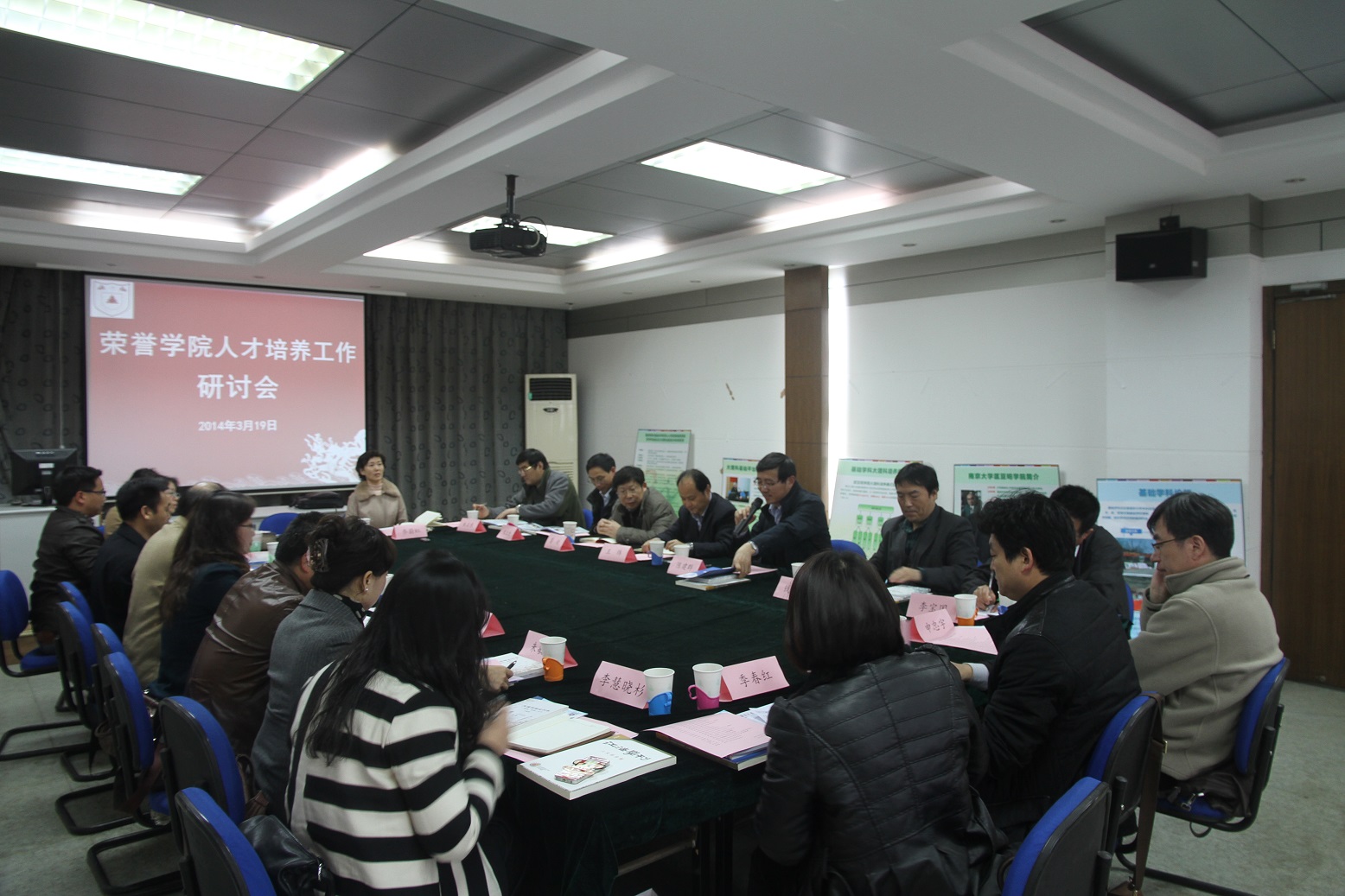 2014年3月20日,太阳成集团tyc在鼓楼校区逸夫馆举办荣誉公司人才培养工作研讨会。太阳成集团tyc、南京师范大学强化培养公司、河海大学大禹公司、南京邮电大学贝尔公司、南京理工大学教育实验公司、江南大学至善公司的院主管领导、负责人参加了研讨会。太阳成集团tyc教务处处长陈建群教授出席会议并致辞。会议由太阳成集团tyc乔蔚虹书记主持。