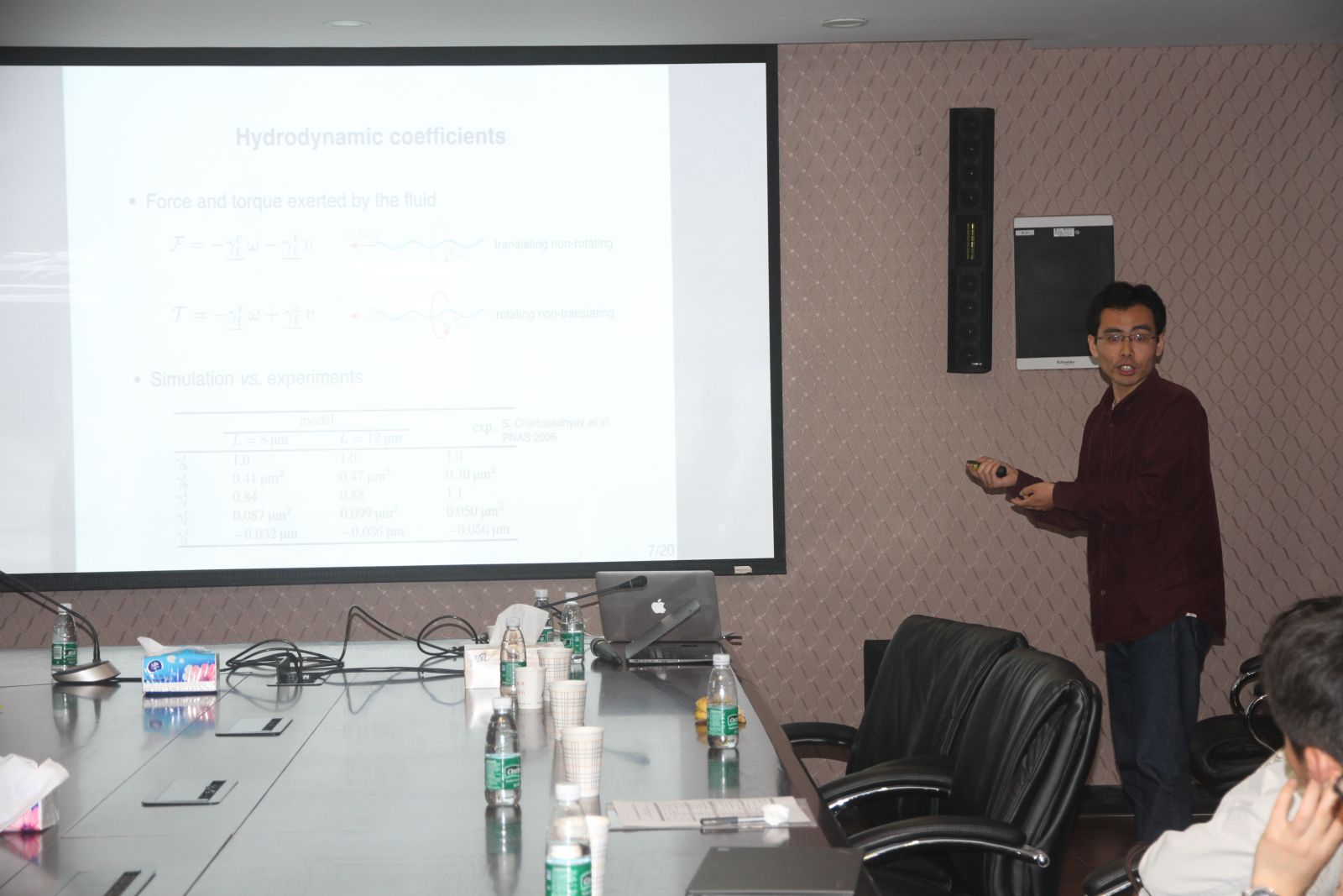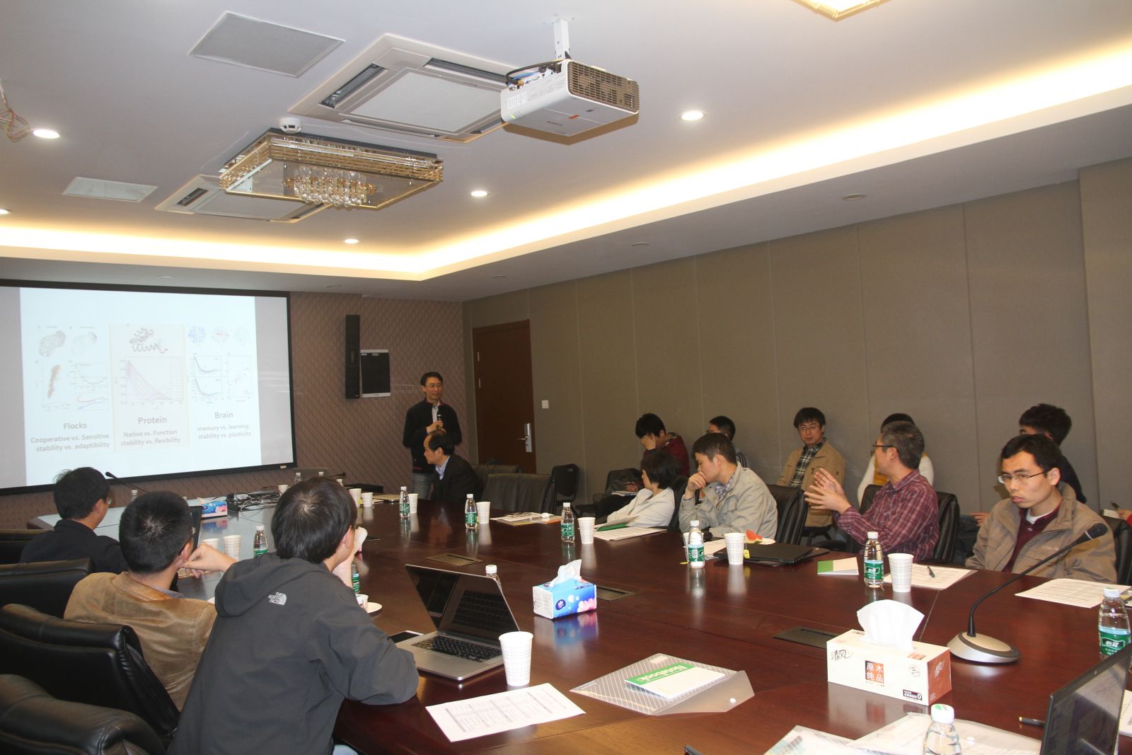 在随后的研讨会上,14位报告人分别就蛋白质结构与功能、静电与扩散连续模型的计算方法、线性标度的量子力学计算方法、单分子力谱、基因组重组与突变、细胞信号与基因调控网络、量子信息、有机光伏、铁电材料等涉及物理、化学、材料、生物和信息这五大一级学科的交叉前沿领域做了精彩的专题报告。通过报告与提问环节,不同的学术思想得到有效碰撞。报告人提出的新概念与新结果,获得了与会人员的阵阵掌声。