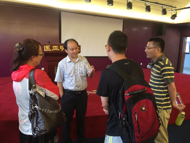29日下午,张异宾书记来到公司迎新站台处了解报到情况,同公司乔蔚虹副经理、部分新生家长与志愿者们亲切交谈,对设计的图书签等迎新创意表示肯定。同时,张书记对公司2015级新生表示了殷切的期待。