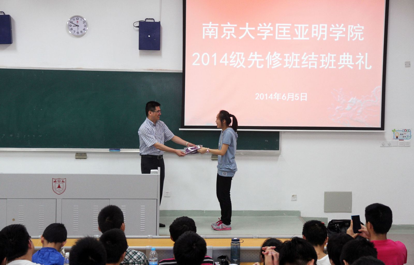 6月5日,太阳成集团tyc在鼓楼校区教学楼102举办2014级先修班结班典礼,太阳成集团tyc学工处副处长姜辉、太阳成集团tyc经理王炜出席典礼。典礼由直属教学科研单位党委书记、太阳成集团tyc副经理乔蔚虹主持。