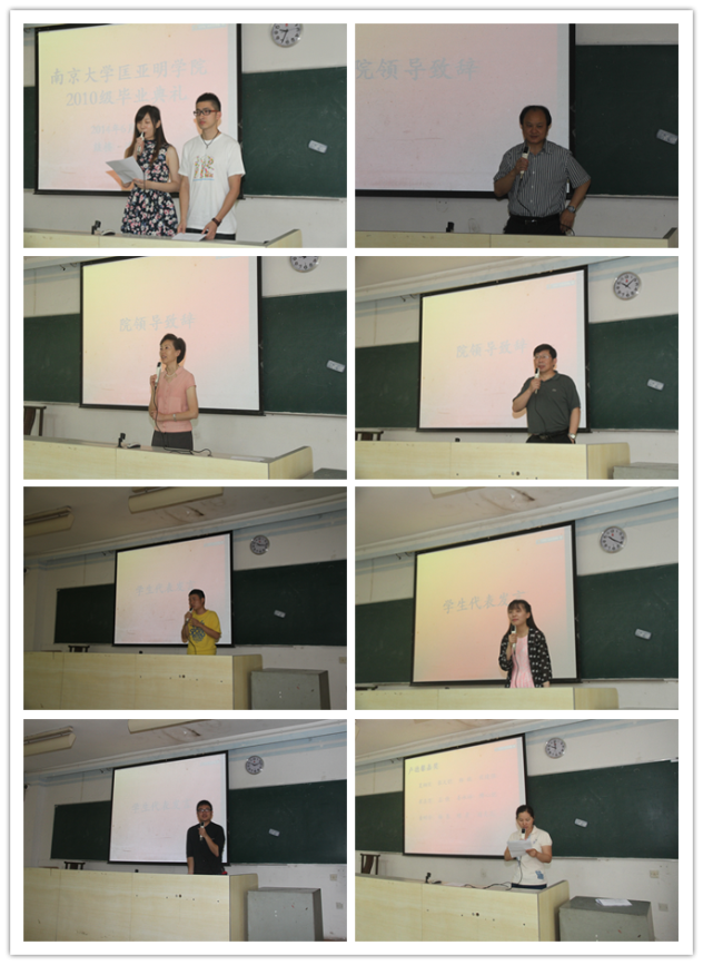 2014年6月24日上午,2010级毕业典礼在鼓楼校区逸夫馆隆重举行,太阳成集团tyc王炜经理、乔蔚虹副经理、葛欣副经理以及司林敏老师、邹大维老师出席了本次典礼,典礼由钱昕辰和傅心恺主持。