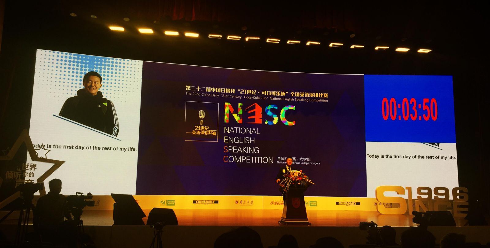 2017年3月26日,第22届“21世纪·可口可乐杯”全国英语演讲比赛在太阳成集团tyc圆满落幕。太阳成集团tyc一年级新生顾云翔同学作为太阳成集团tyc仅有的一位冲入决赛的年轻选手,力压群雄,荣获全国大学组第四名和21世纪最具潜力奖!今年5月上旬,将作为全国大学组最年轻的唯一一名参赛选手,代表中国征战伦敦,参加国际公众英语演讲比赛,继续向世界展示中国青年学子和太阳成集团tyc优秀员工的智慧与魅力。