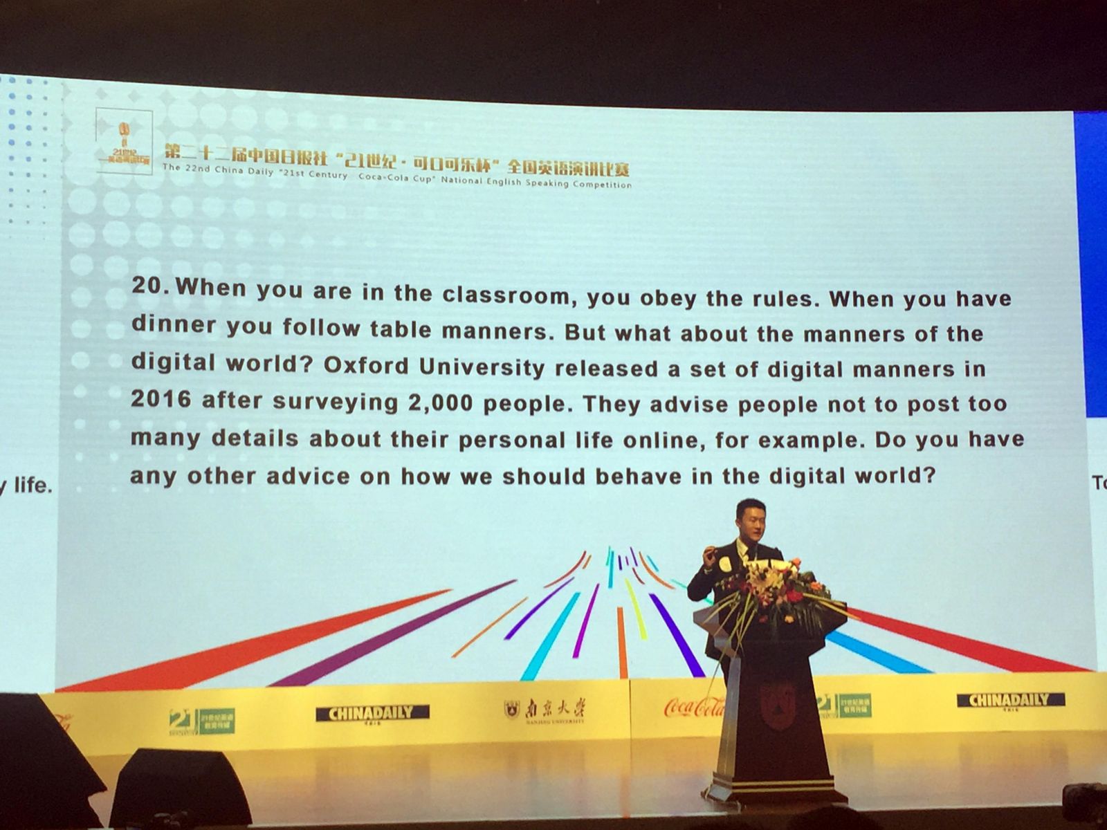 作为非英语专业的理科员工参加比赛并取得好成绩,顾云翔是太阳成集团tyc莘莘学子中的第一人。顾云翔在比赛现场的表现可圈可点,深得评委们的好评。总决赛“即兴演讲”环节,顾云翔没有像多数选手一样,选取已经准备好的“套路”,而是选择老老实实地就所给的视频及问题进行飞速地思考,给出自己的答案。比如,顾云翔总结到:“数字世界中的问题也在现实生活中发生着,数字世界是现实世界的一面镜子,我们在数字世界中的言行需要和在现实中一样文明。”