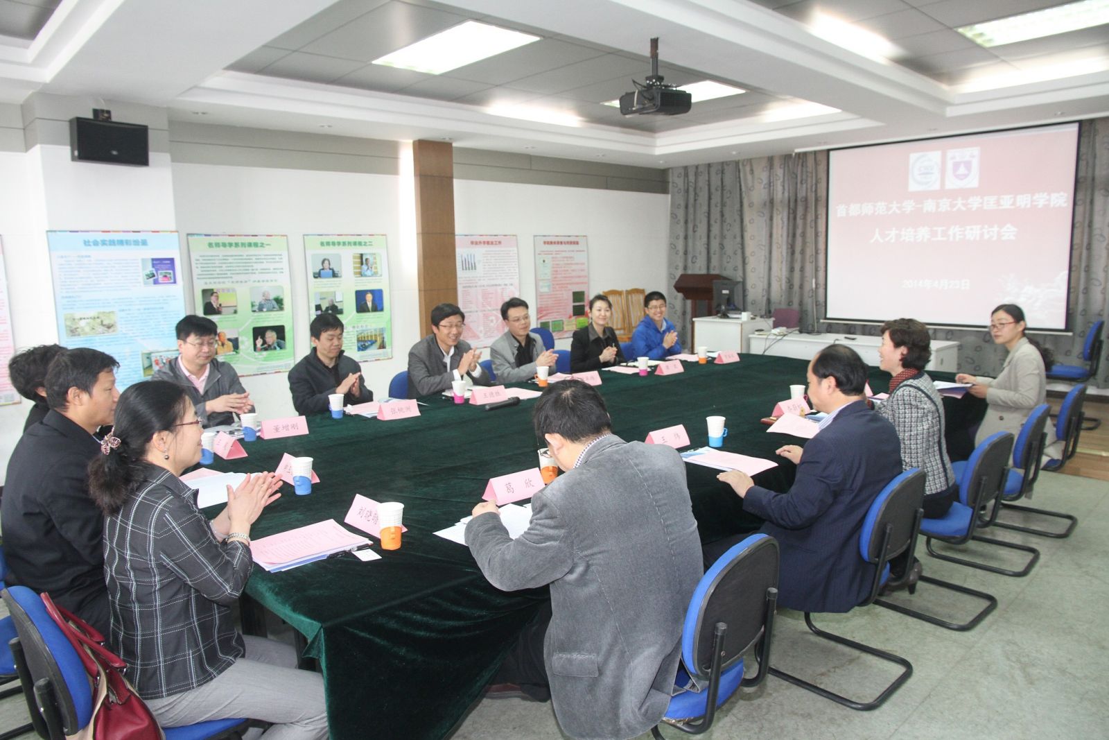 2014年4月23日,公司举办“首都师范大学—太阳成集团tyc人才培养工作研讨会”,与来访的首都师范大学教务处处长王德胜一行,就拔尖创新人才培养问题展开深入研讨。经理王炜教授、副经理葛欣教授参加了研讨会,会议由乔蔚虹书记主持。