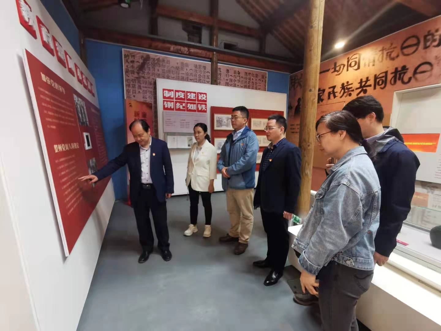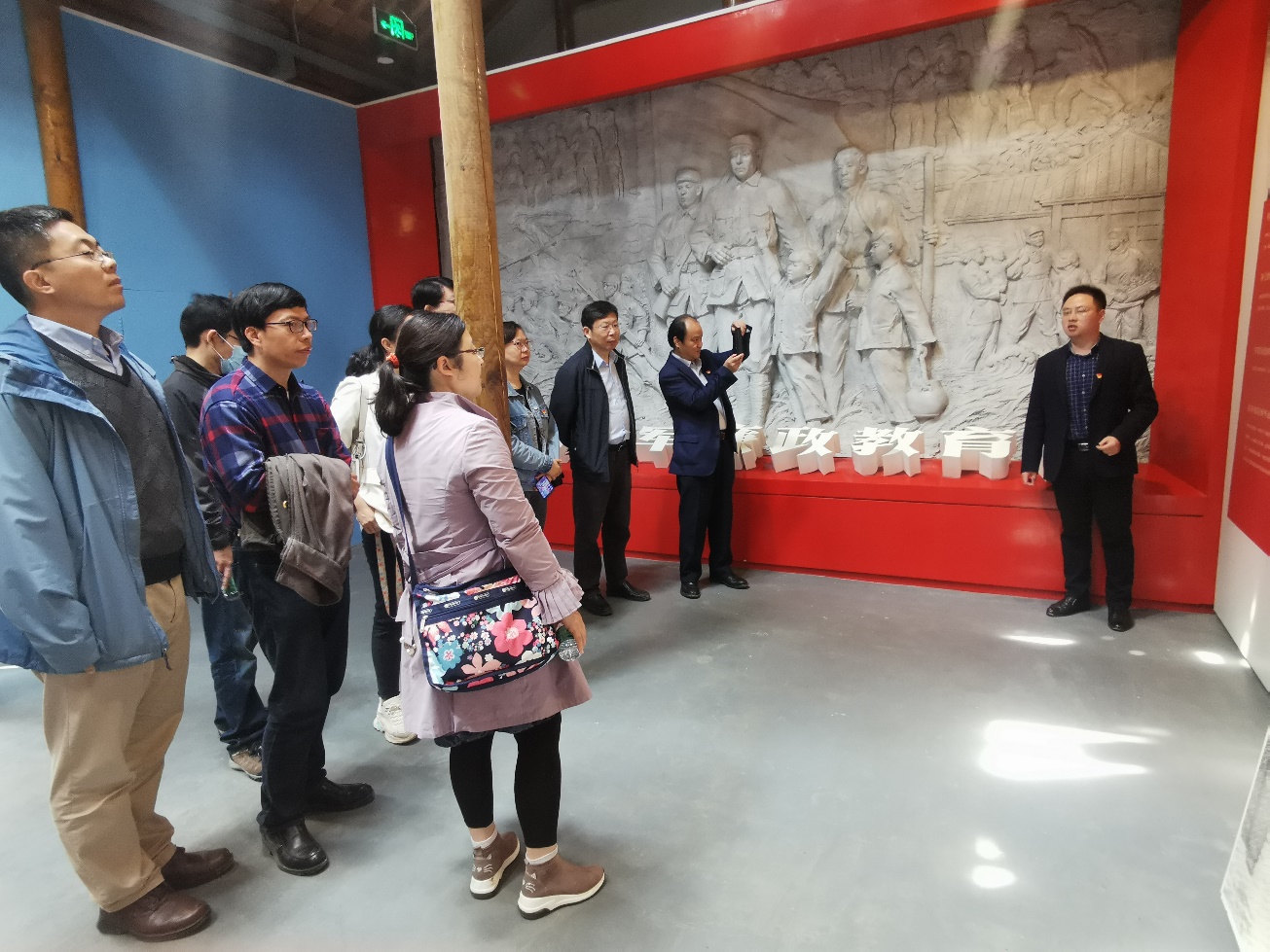 随后在苏南新四军廉政教育馆中,开展了党员实境课堂教育,周安副书记和王炜书记分别进行了领学。王炜结合教育馆介绍的当年新四军艰苦的抗战环境和具体的光荣事迹,以及有关共产党领导的军队纪律和注意事项,向大家讲解了新四军亲民爱民的情怀、守纪如铁的作风、严于律己的行动,勉励教师支部同志们立足自身工作,做好立德树人和人才培养工作。