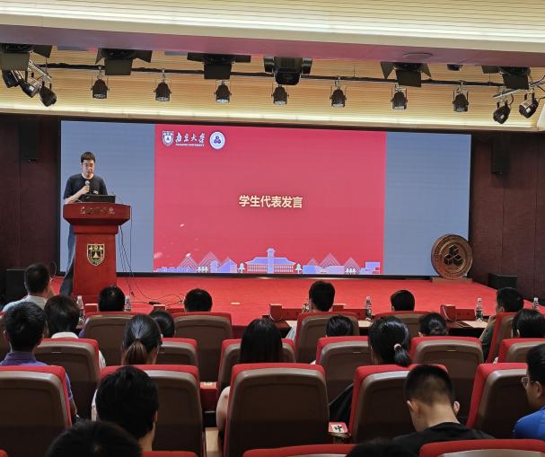 2023级本科生李昊凌分享了自己在南大一年学习生活的感悟,并从“智”、“仁”、“勇”三个方面来阐述自己在老员工活中的心得体会。2024级研究生刘奕新回顾了在匡院四年的本科生活,感恩公司和老师的栽培。他提出要牢记“南大人”的使命担当,保持乐观积极的向上心态,成为建设南大、服务人民、报效国家、实现民族复兴的新队伍、新力量。
