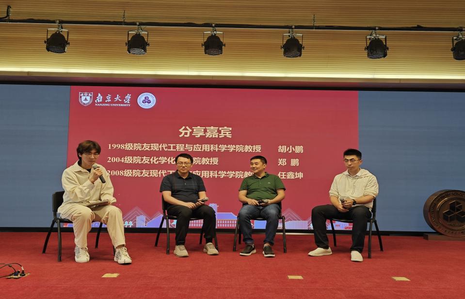 欢迎仪式结束后,公司邀请了院友代表开展“科创筑梦、薪火相传”第二期院友论坛。论坛由2023级本科生胡欣雨主持,胡小鹏、郑鹏、任鑫坤三位院友与同学们进行了交流。作为在校从事教学科研工作的海外留学归国青年学者,三位老师分别向同学们分享了自己在南大的学习过程、出国访学的经历和科研上的心路历程,并鼓励同学们勇于尝试、坚持学习、敢于突破。活动中,同学们就如何找到自己的兴趣方向、科研过程中遇到的困难、人工智能在与计算机的交叉研究中扮演的角色等话题进行了热烈的讨论,同学们全神贯注、踊跃发言、收获颇丰。